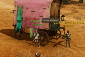 Examinez le chariot abandonné juste à côté de l’officier de sécurité Agna et plusieurs Embusqueurs des Faucons obscurs apparaîtront ( les gardes du corps de clan vous aideront à les tuer ).
