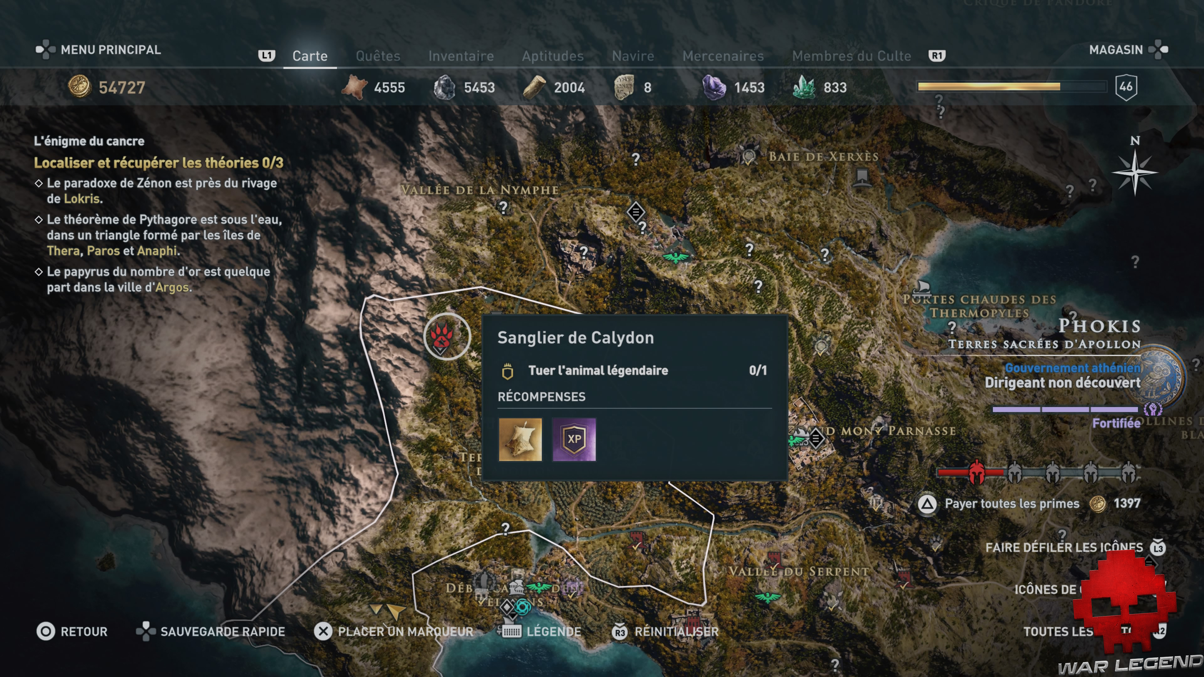 Acceptez sa quête secondaire pour déclencher cette chasse inaugurale. Le Sanglier de Calydon est alors marqué sur votre carte, non loin.