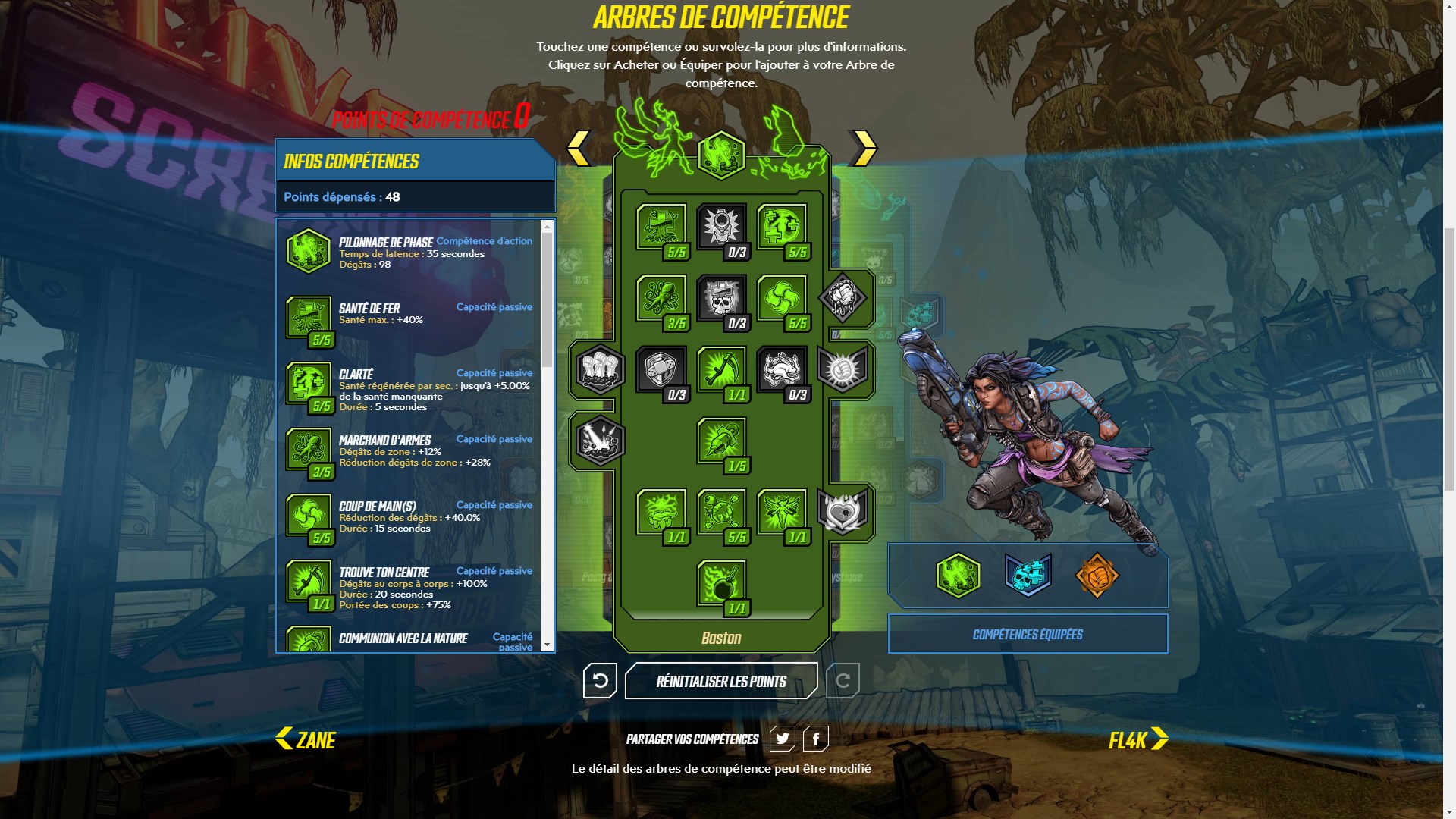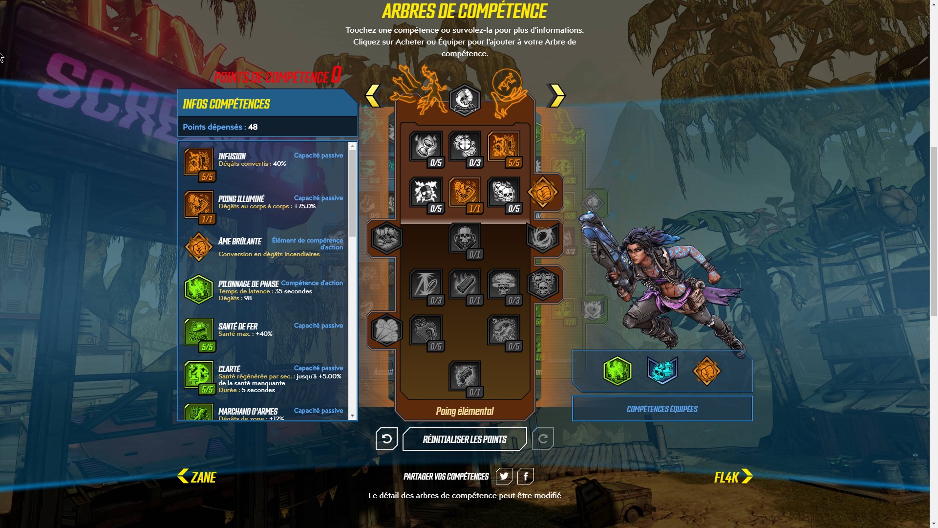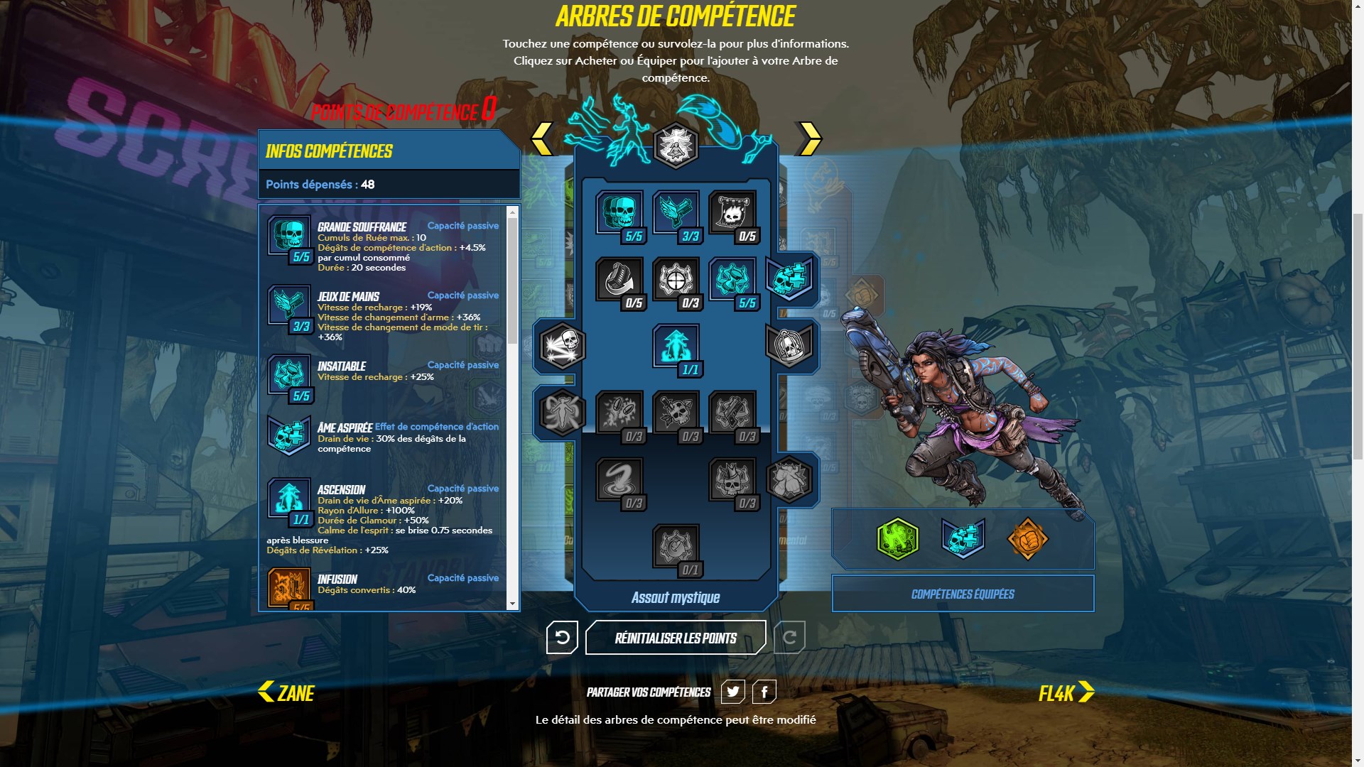 Cette branche se concentre davantage sur la compétence d’action, offrant divers bonus à l’activation, notamment avec les cumuls de Ruée débloqués avec Tapisserie violente et Grande Souffrance. Chaque cumul de Ruée offre divers bonus en fonction des compétences utilisées, les dégâts de compétences d’action et les chances de statut étant les principaux. Une mécanique de jeu qui n’est pas sans rappeler les cumuls d’Anarchy de Gaige, la Méchromancienne de Bordelands 2.