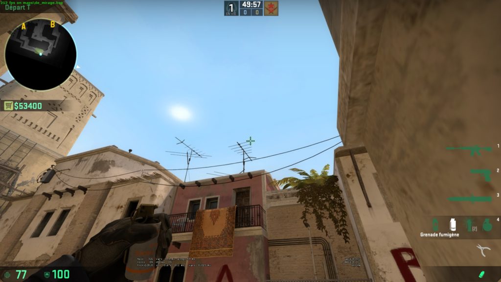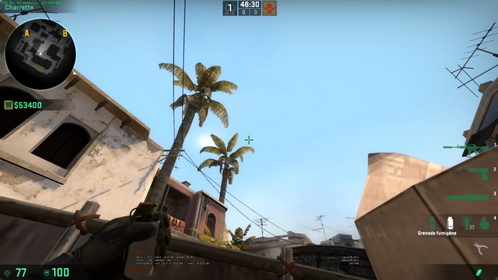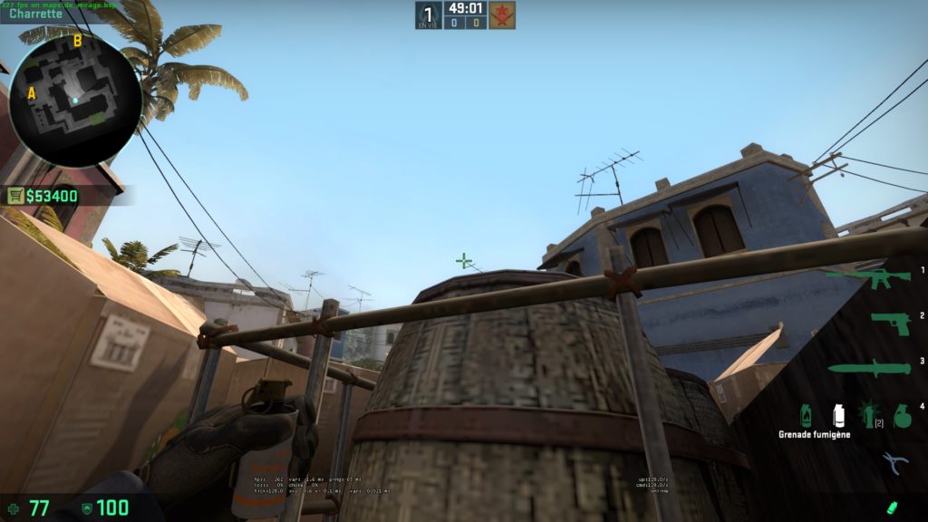 Il vous suffit juste de monter sur la poubelle T spawn et de viser l’antenne. Cette smoke est facilement ajustable : si vous voulez qu’elle apparaisse plus à droite, déplacez simplement votre viseur. Elle vous offre une protection de la window mais aussi d’un éventuel CT dans le recoin du connector. Cependant, faites attention, vous êtes visible d’un CT qui est avancé dans la short.