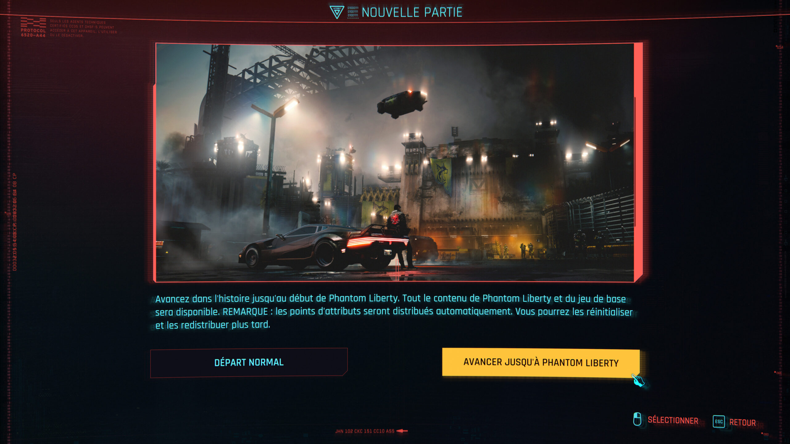 Avec l’arrivée de la version 2.0 de Cyberpunk 2077 qui apporte des changements dramatiques au gameplay et au système de progression du jeu, CD Projekt Red recommande de recommencer entièrement une partie si l’on compte profiter du contenu de Phantom Liberty.