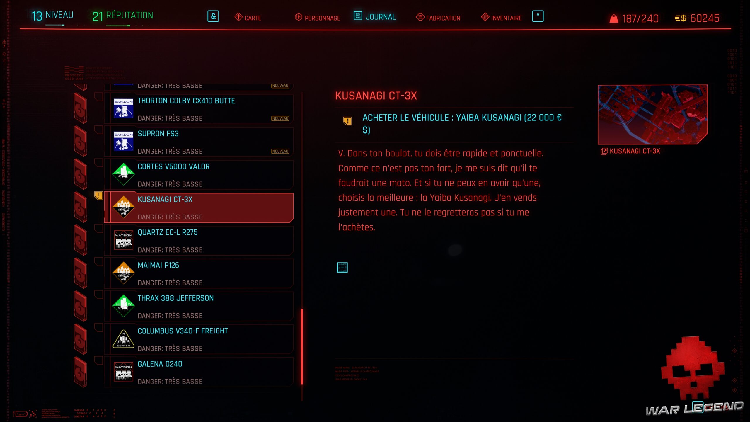 L’offre des fixers en véhicules dépend de plusieurs facteurs (comme le fait de les rencontrer en vrai), mais le catalogue d’étoffe principalement au fur et à mesure de votre niveau de réputation. Si une voiture de la liste n’est pas encore proposée, faites monter votre réputation en accomplissant des contrats (quêtes secondaires) ou en aidant le NCPD à travers la ville.
