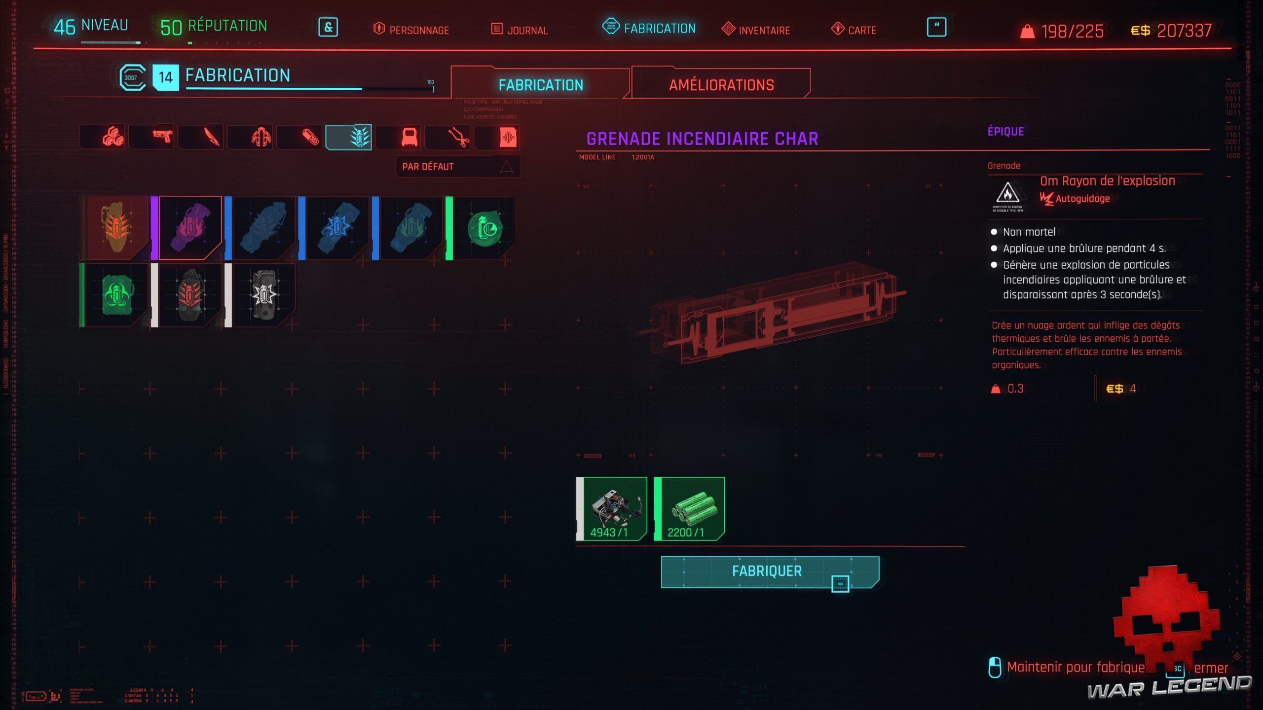 Si votre V a une bonne Capacité technique, vous serez très vite tenté de fabriquer vos propres armes et armures. Cependant, les objets de haut niveau sont particulièrement gourmands en ressources.