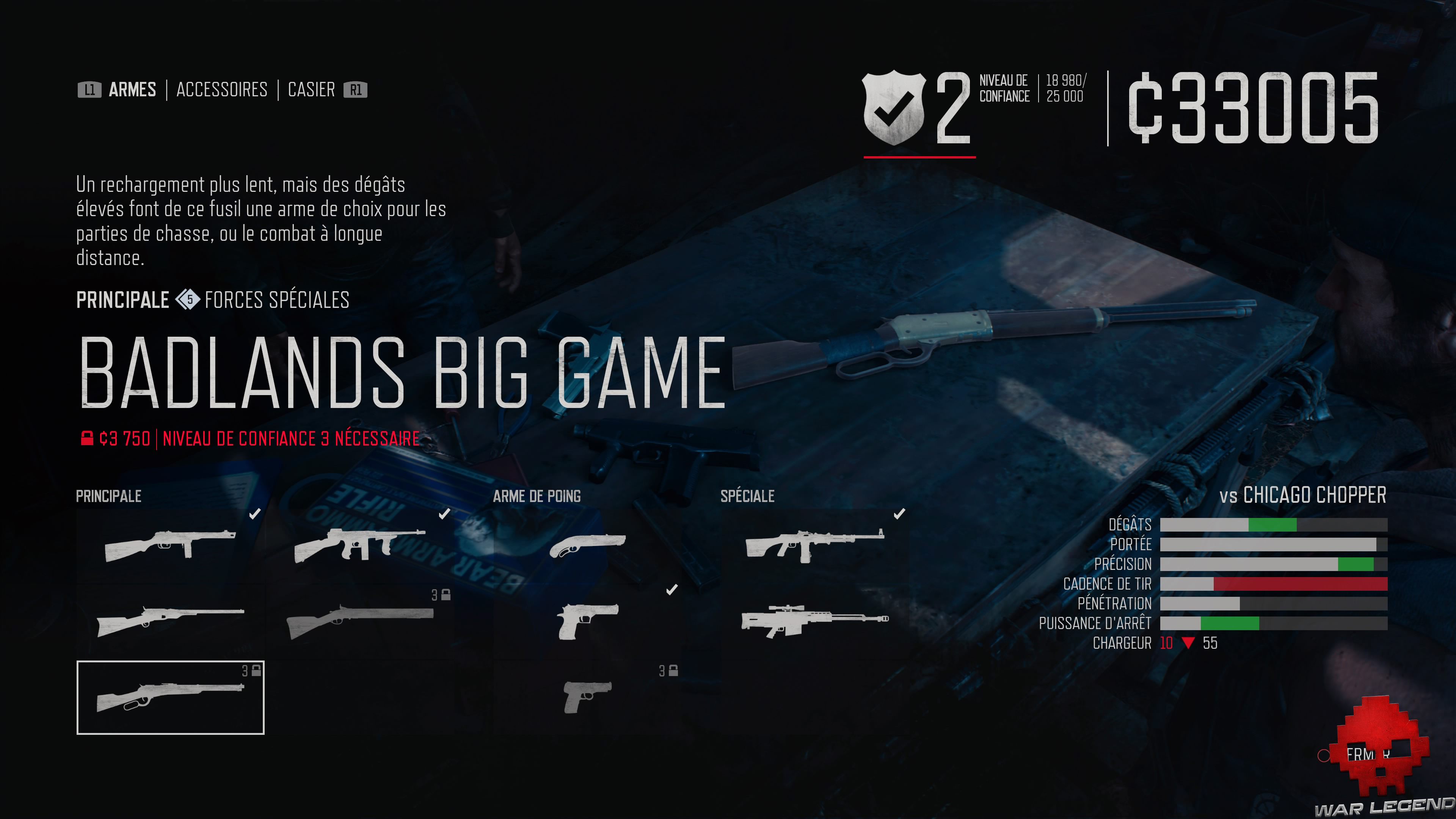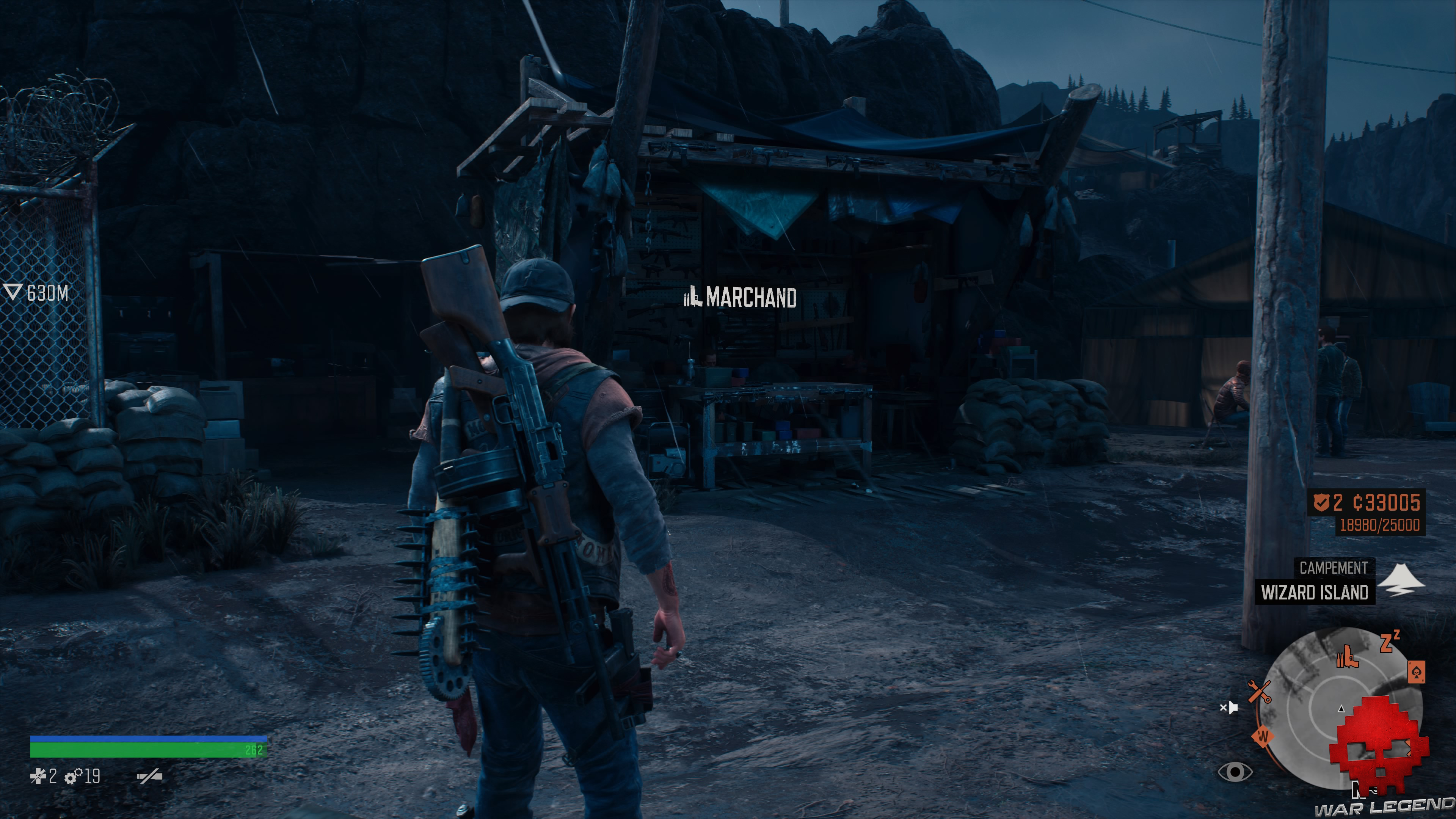 Dans Days Gone, toutes les armes que vous trouvez dans le monde sur les cadavres encore chauds de vos adversaires ne sont pas à vous définitivement : tant que vous les gardez équipées, pas de problème, mais si vous en ramassez d’autres, elles remplacent les précédentes. Le seul moyen d’avoir une arme à soi dans son casier et donc rééquipable à souhait, c’est de dépenser des espèces sonnantes et trébuchantes chez un marchand.