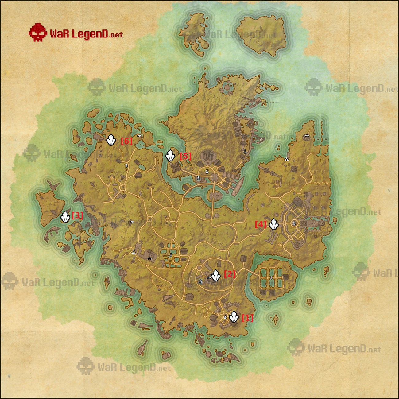 Légèrement à l’ouest du Temple des Sources du Deuil, près de la route. Plus précisément au nord-ouest de la zone de départ, le Détroit de l’Aigle, et au nord-est de la Plantation de la Coquille Mouchetée.