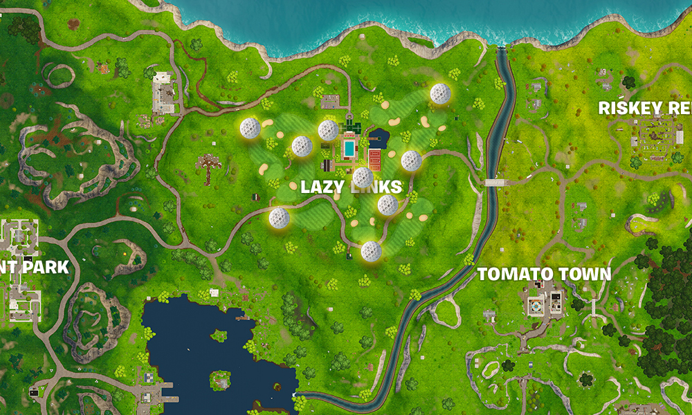 La mission consiste à utiliser l’emote Balle de Golf depuis les différents points de départ pour ensuite faire atterrir la balle sur le green du trou associé.