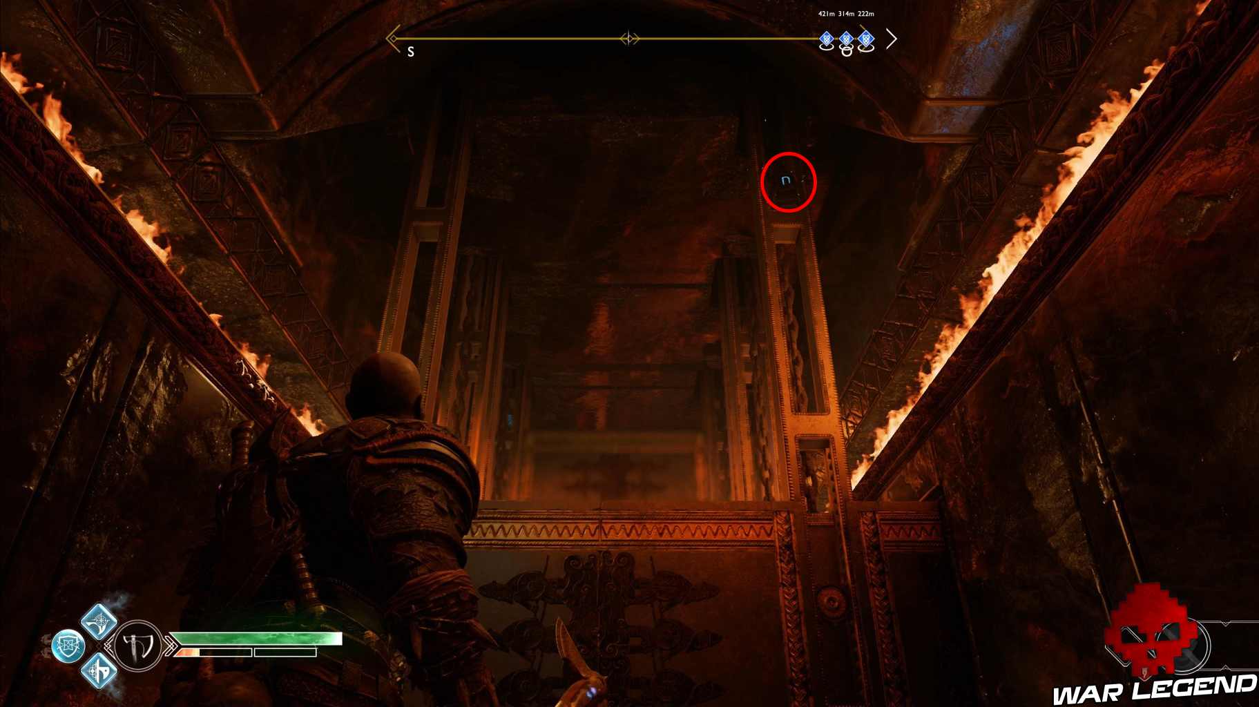 En partant du second coffre légendaire, traversez tout simplement le passage où vous avez pris les « Vents de Hel » aux scies circulaires.