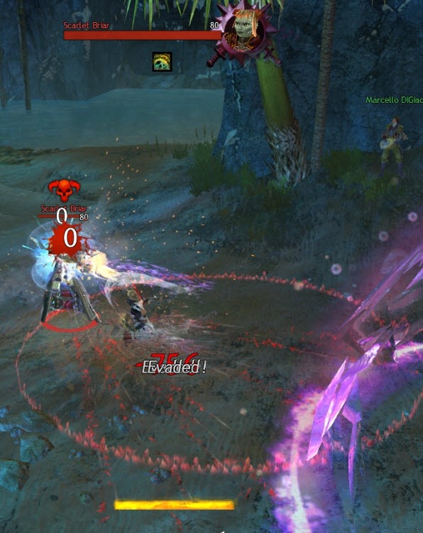 Scarlet Round 2Scarlet a deux compétences dont il faut faire attention :1) Pluie de Dagues, où elle va tournoyer et envoyer des goo sur le sol. Cette compétence lui confère également stabilité et renvoi de projectiles.