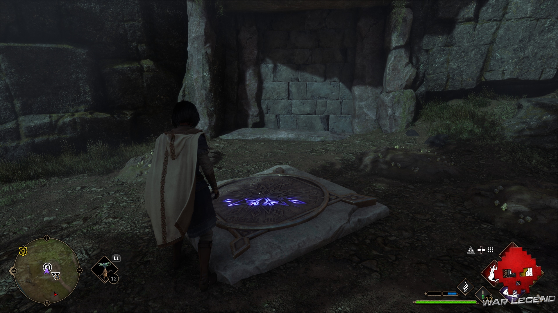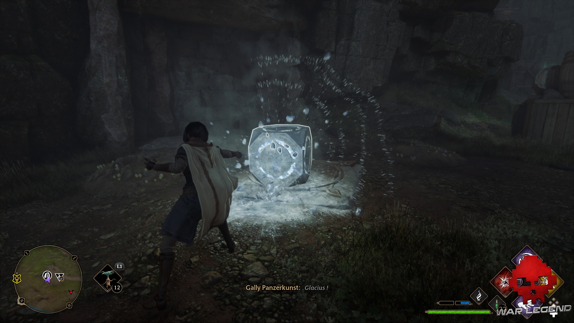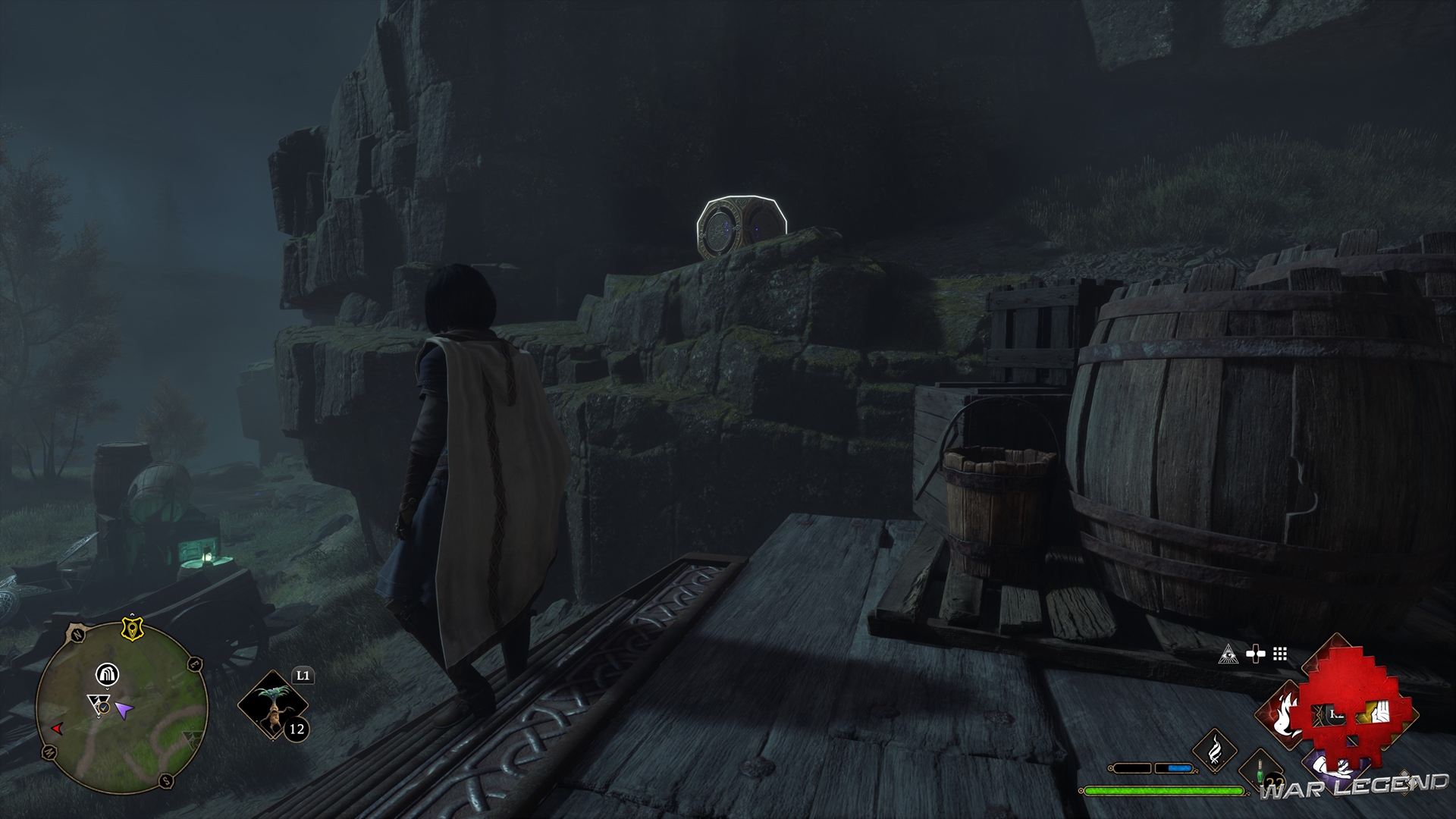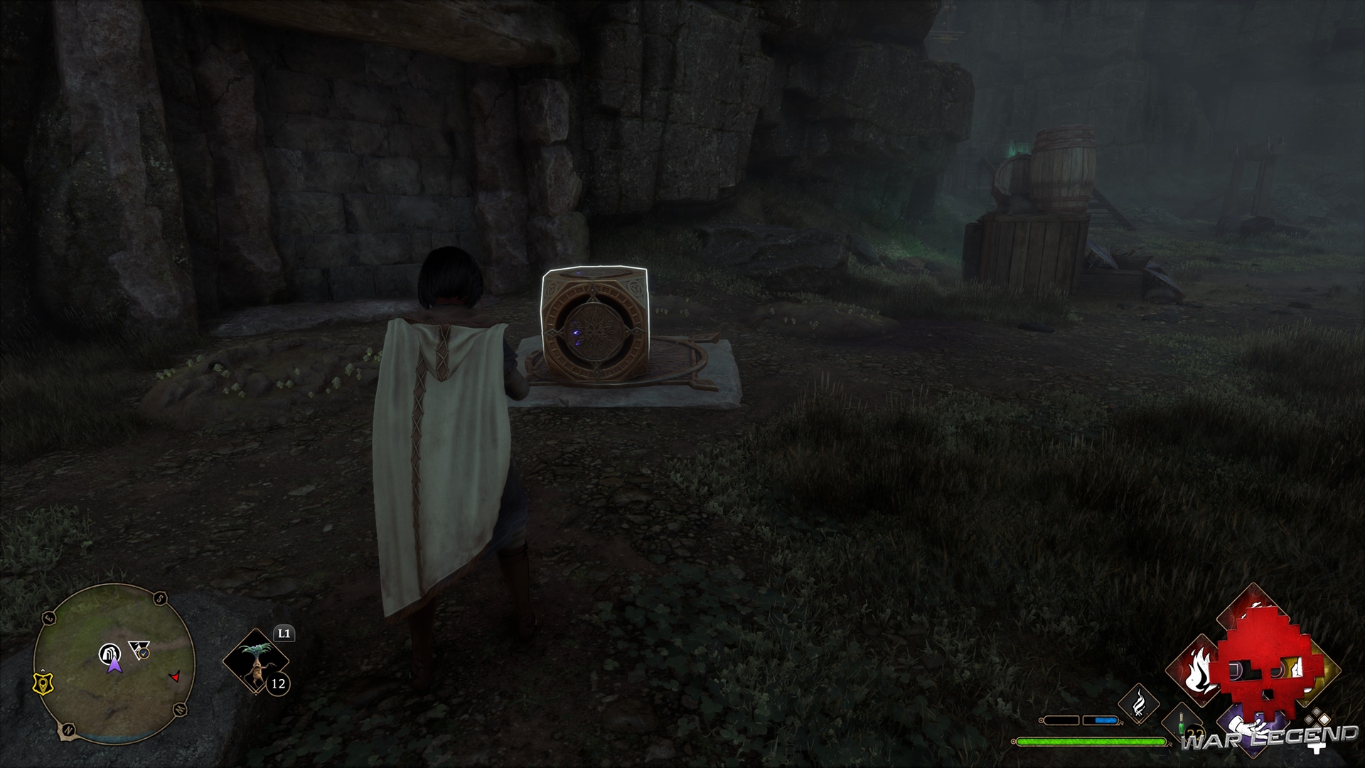 Utilisez Revelio et scrutez les alentours : normalement, vous devriez pouvoir distinguer un cube en pierre, plus ou moins loin de l’entrée du Coffre au trésor. N’hésitez pas à investir un point de talent dans l’amélioration de la portée de Revelio pour vous faciliter la vie.