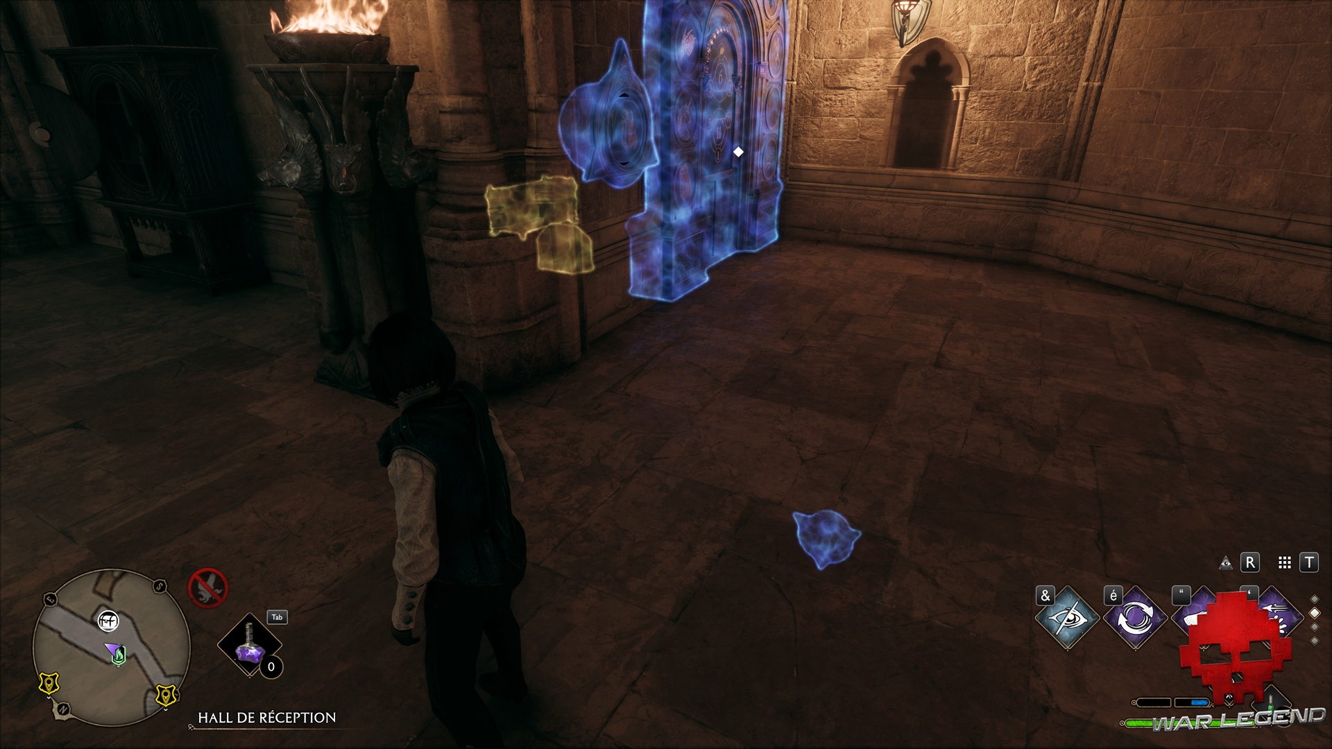 Les plaques à manipuler se trouvent généralement peu loin de la porte, mais certaines sont plus ou moins cachées. Utilisez Revelio pour les discerner à travers les murs.