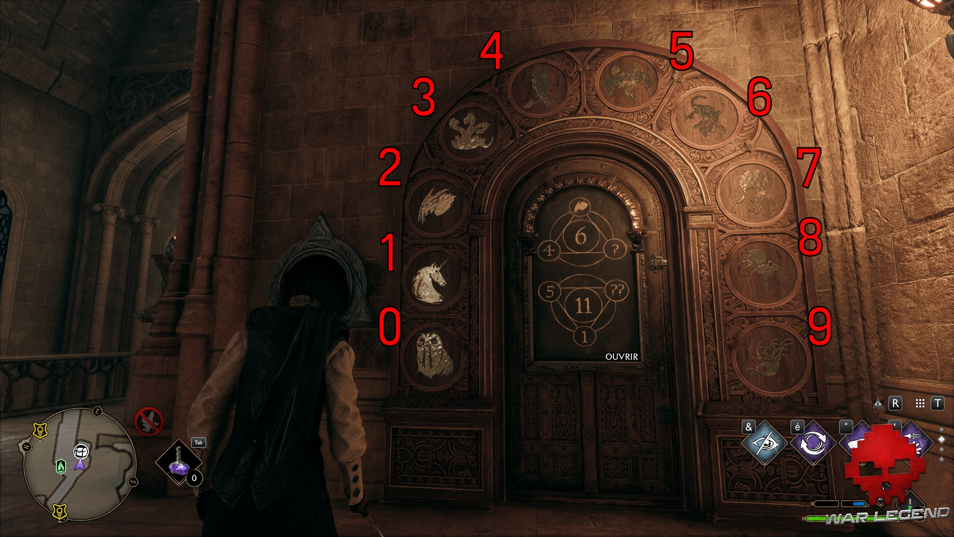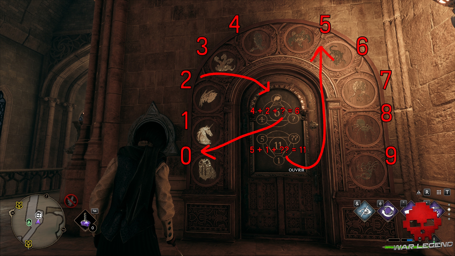 Le code est commun à toutes les portes à symboles du château. Avec cet exemple, vous êtes désormais capable de toutes les ouvrir. Prenez le réflexe de vous référer à la suite qui encadre alors la porte.