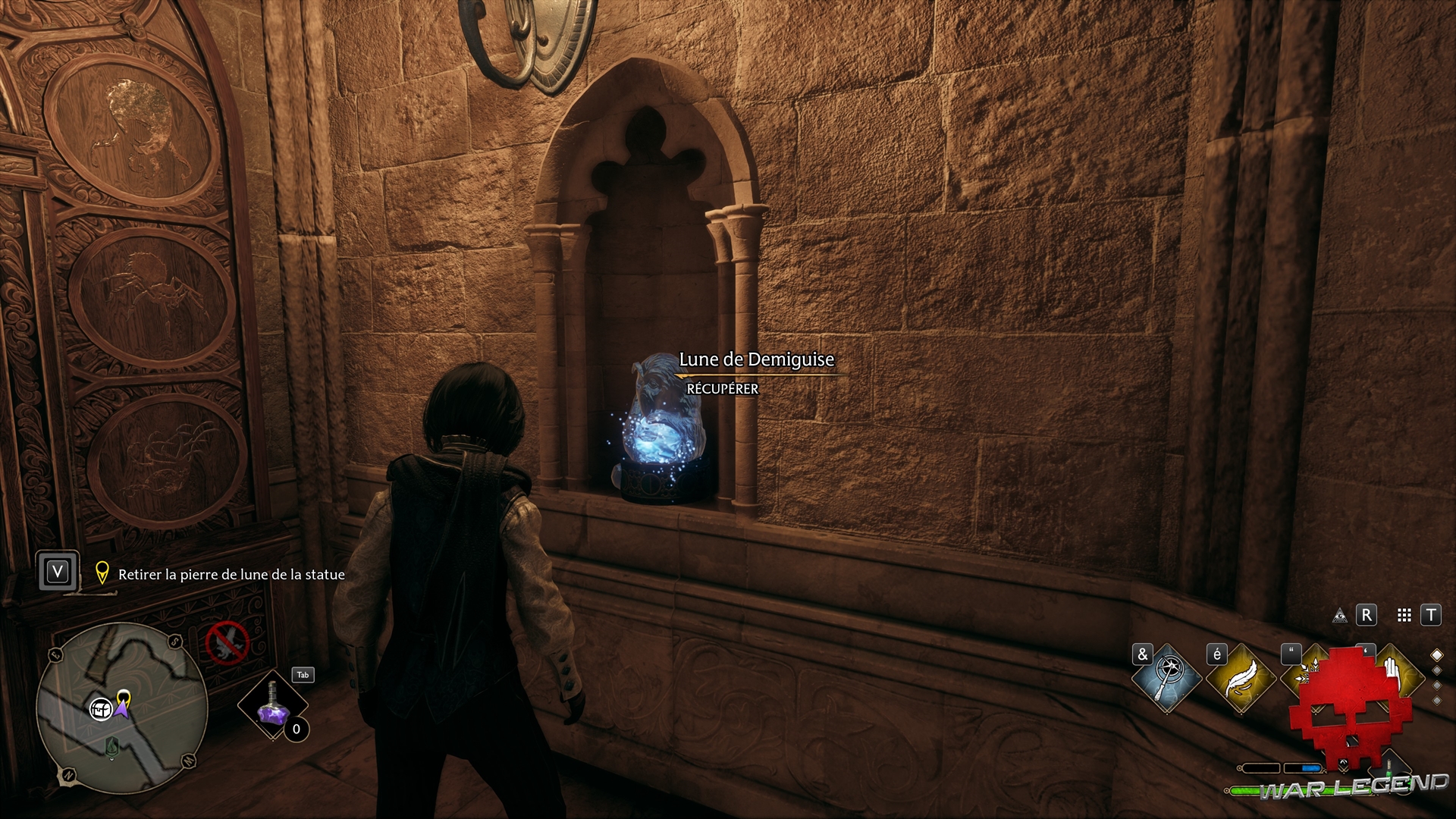 Une fois la quête de Gladwin Moon terminée, une quête secondaire s’active, vous demandant de trouver davantage de statues de Demiguises. Rapporter les lunes qu’elles renferment au concierge de Pourdlard vous permet alors d’améliorer le sortilège.