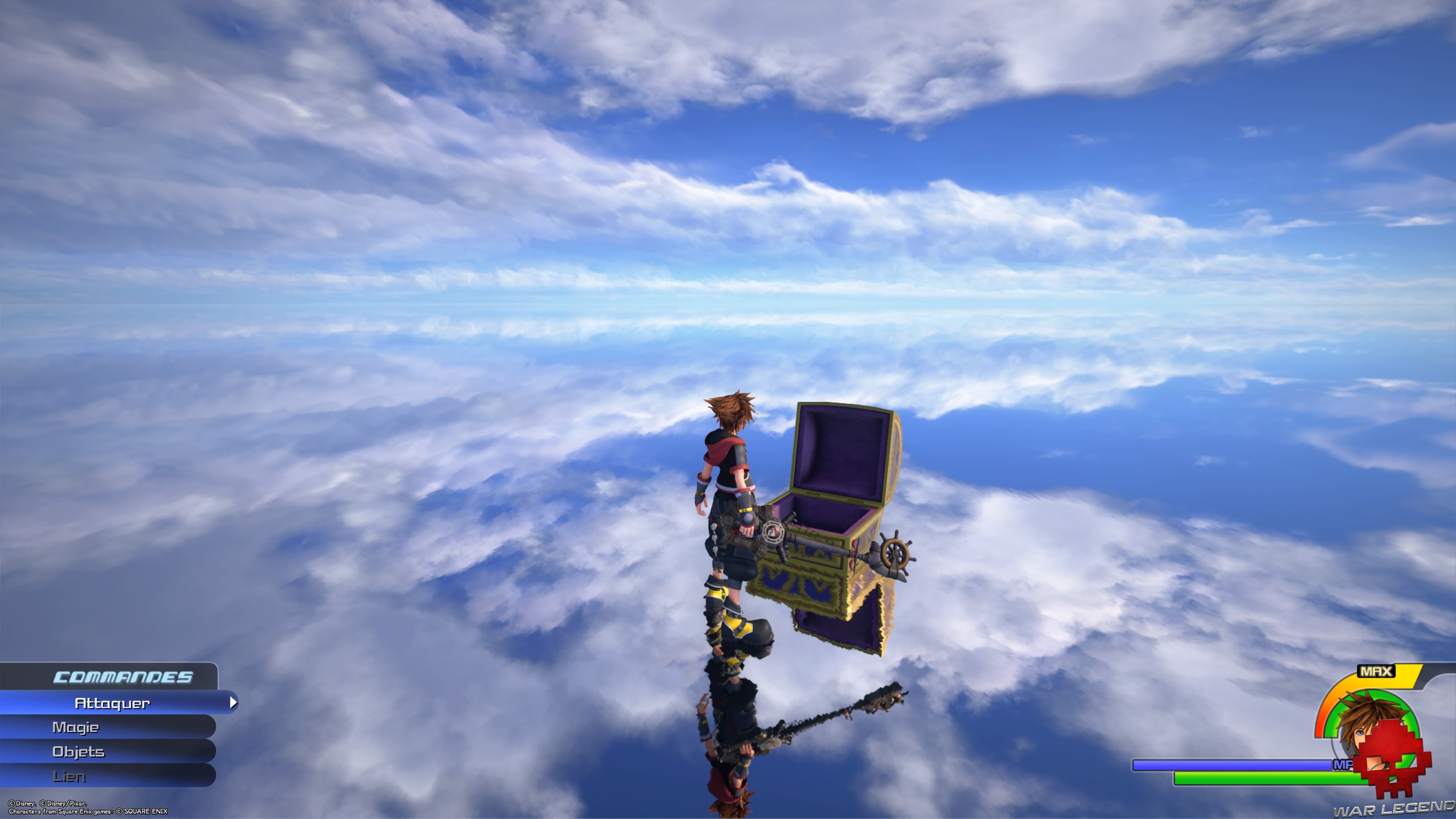 Coffre au trésor dans le Monde Final. Seul et unique coffre de ce monde (et dernier de la liste). Il vous suffit de revenir dans ce monde une fois les évènements relatifs à l’histoire terminés ; le portail qui permet de s’y rendre se trouve au tout début de la Necropole des Keyblades.