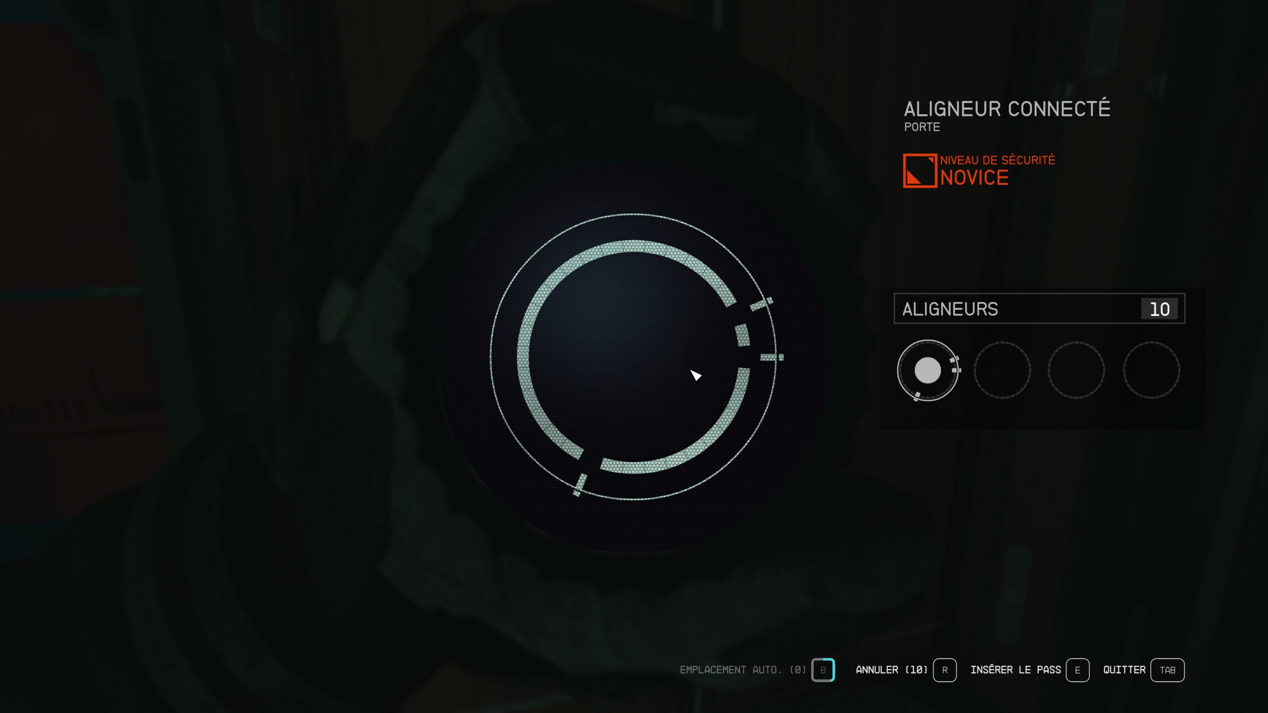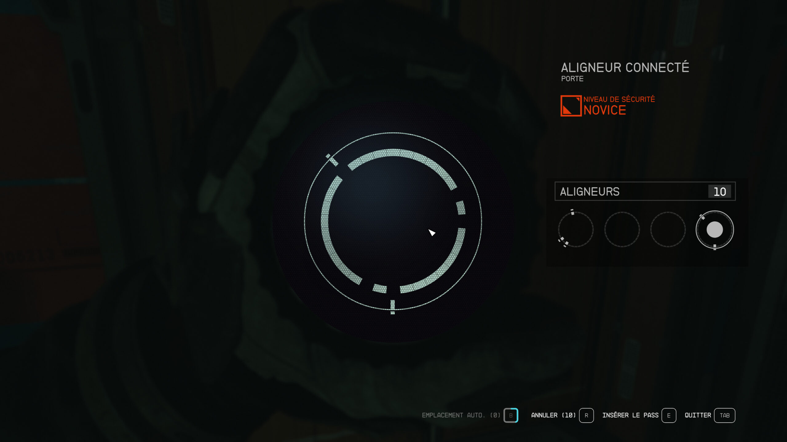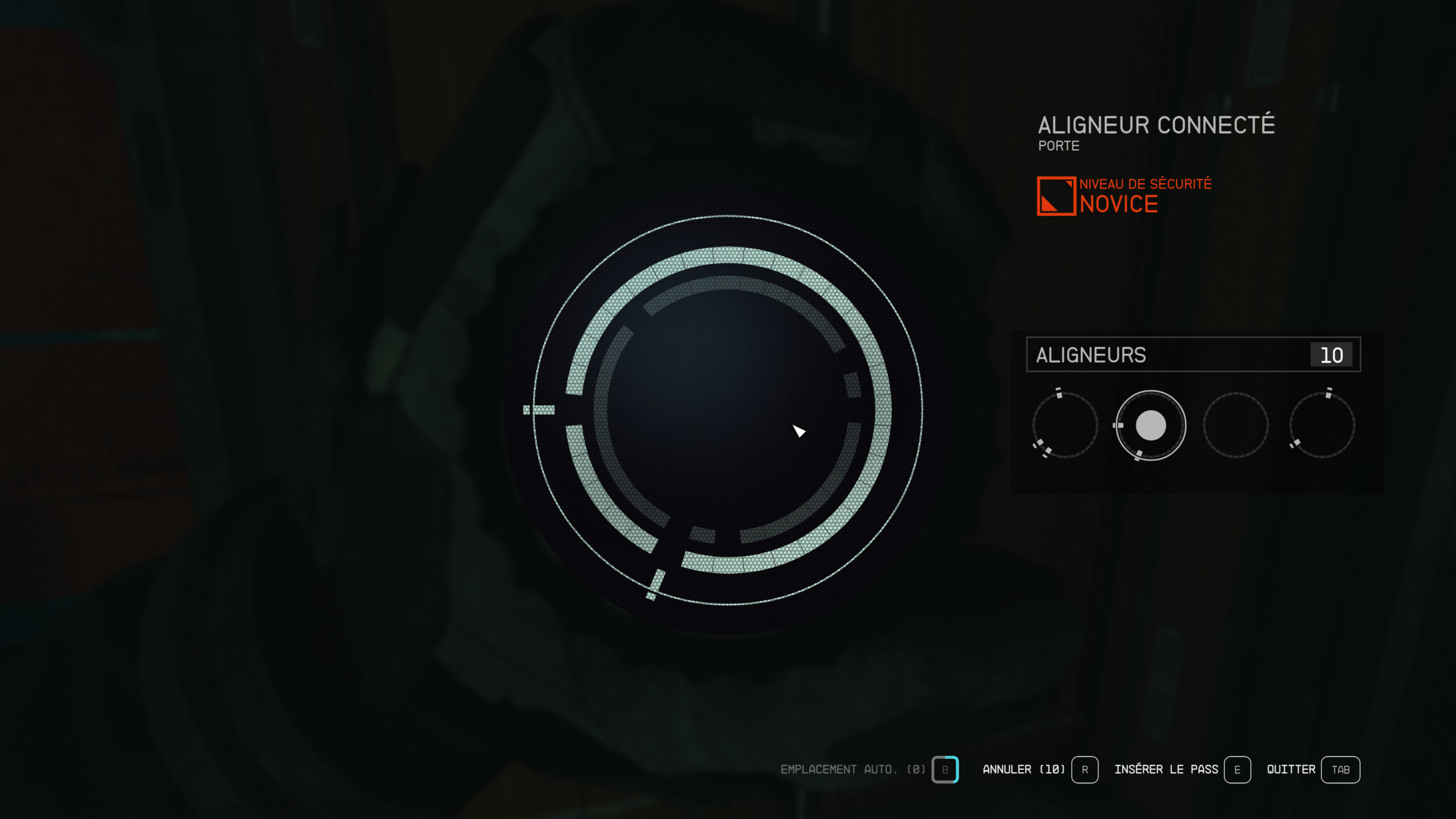 En cas de suspicion d’erreur, vous pouvez annuler votre dernière action, mais cela vous consommera un aligneur supplémentaire. Si vous êtes certain d’avoir percé la solution, n’hésitez pas à vous servir de la fonction. Sinon, il est conseillé de recommencer de zéro avec une situation nouvelle. Les mini-jeux de crochetage sont générés procéduralement : la combinaison est unique à chaque tentative.