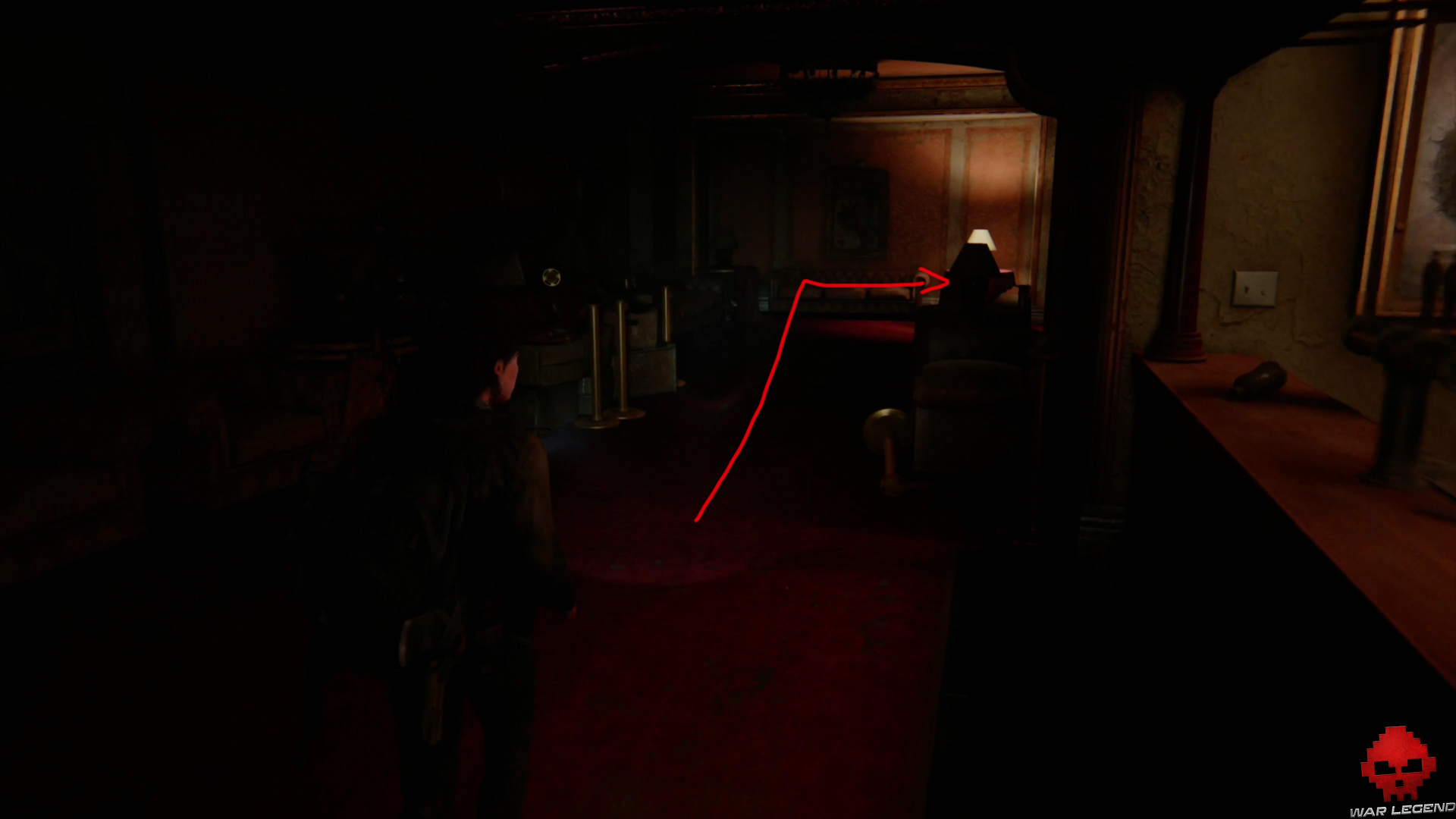Montez à l’étage et allez au fond du couloir. La carte se trouve sous un canapé renversé.