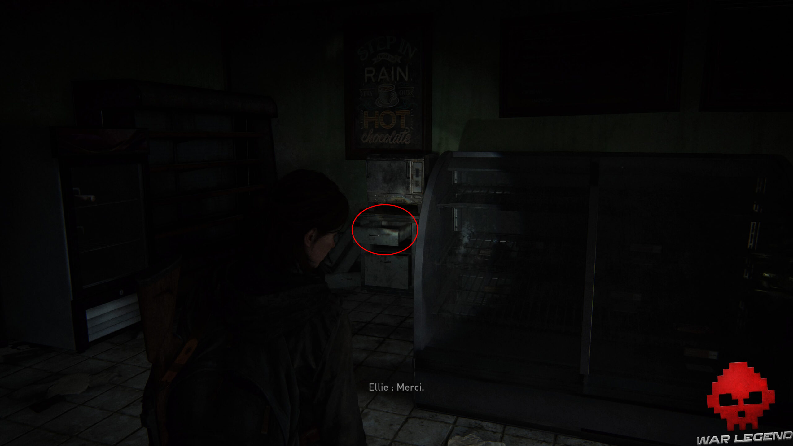 Lorsque vous explorez Seattle librement, repérez un bâtiment en ruines face à la synagogue. Montez via l’escalier et cassez une vitre pour pouvoir atteindrez un nouvel escalier menant à un bureau dont le tiroir renferme la carte.