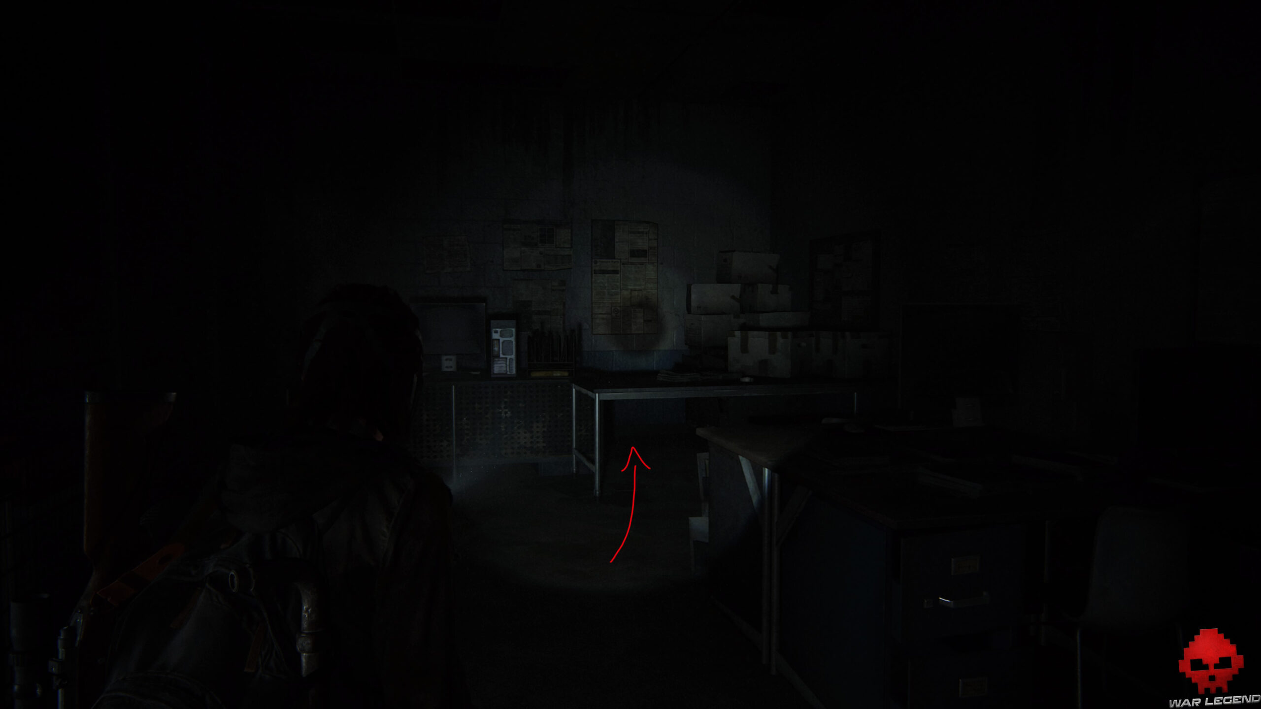 Dans le local de stockage, avancez et passez sous le bureau du fond et accéder à une zone autrement inaccessible. La carte se trouve sur un bureau.