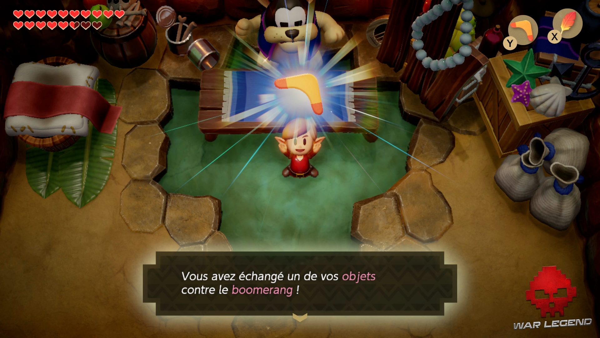 À l’intérieur, Goriya vous propose d’échanger un objet assigné à l’un de vos raccourcis contre une récompense. Spoiler alert : c’est le boomerang.