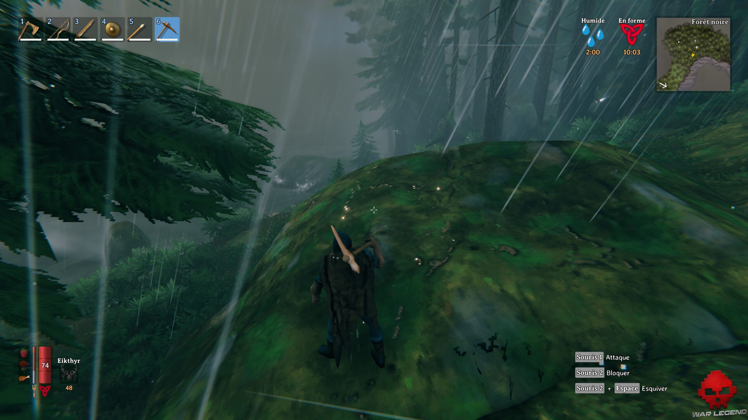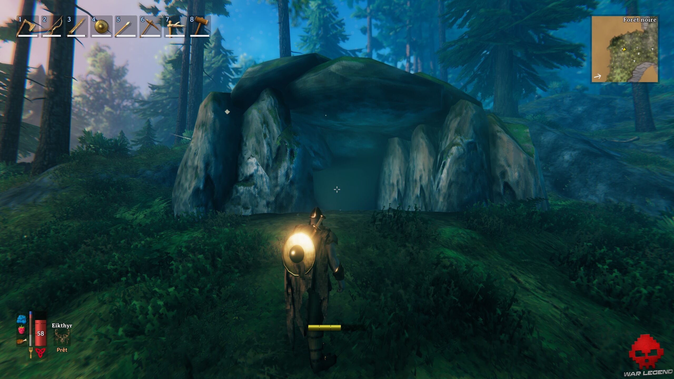 Avant toute chose, vous devrez obtenir une pioche. Il est impossible de la construire avant d’avoir abattu le 1er boss du jeu, qui est désigné sur la carte dès le départ grâce à la petite pierre du cromlech où vous débutez l’aventure.