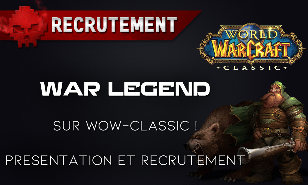 Nous lançons un appel aux armes pour toutes personnes souhaitant s’investir sérieusement sur WoW Classic. Que vous ayez pour ambition de monter vos grades PVP rapidement, ou que vous ayez une grande soif de PvE HL, War Legend vous propose de rejoindre son nouveau roster 2019.