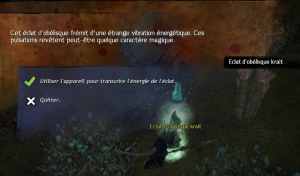 Etudier 24 éclats d’obélisque krait dans le monde. Rapporte 10 points et un Parchemin de connaissance (l’utilisation fait gagner 5 points de compétences)
