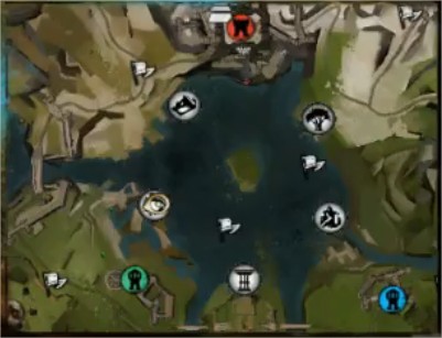 Pour cela il faut posséder pendant « suffisamment longtemps » 3 des 5 points de contrôle sur la carte. Comme vous pouvez le voir ces points sont répartis équitablement autour de ce qui était le lac central. Pour permettre à ces nouveaux points sensibles d’accueillir les combats, les développeurs ont du modifier sensiblement l’environnement.