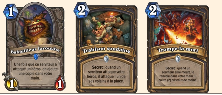 Nous découvrons avec plaisir l’apparition de secret pour le voleur. A la base, le voleur avait des secrets mais Blizzard a décidé de donner cette mécanique au Paladin. Avec Kobolds et Catacombes, il se donne l’occasion de remettre cette mécanique au voleur pour le plaisir de tous (ou pas). On remarquera que l’on reste dans le côté fourbe et sournois de la classe.