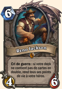 Mais alors qu’on s’attend dans quelques mois – entre février et mars – à voir les emblématiques aventures Mont rochenoire et Ligue des explorateurs disparaître, beaucoup de joueurs s’interrogent. En effet, est-ce que des cartes aussi importantes que Reno Jackson, qui base des decks à lui tout seul autour de sa mécanique, vont aussi devenir caducs ? Pour rappel, voici l’effet de la carte :