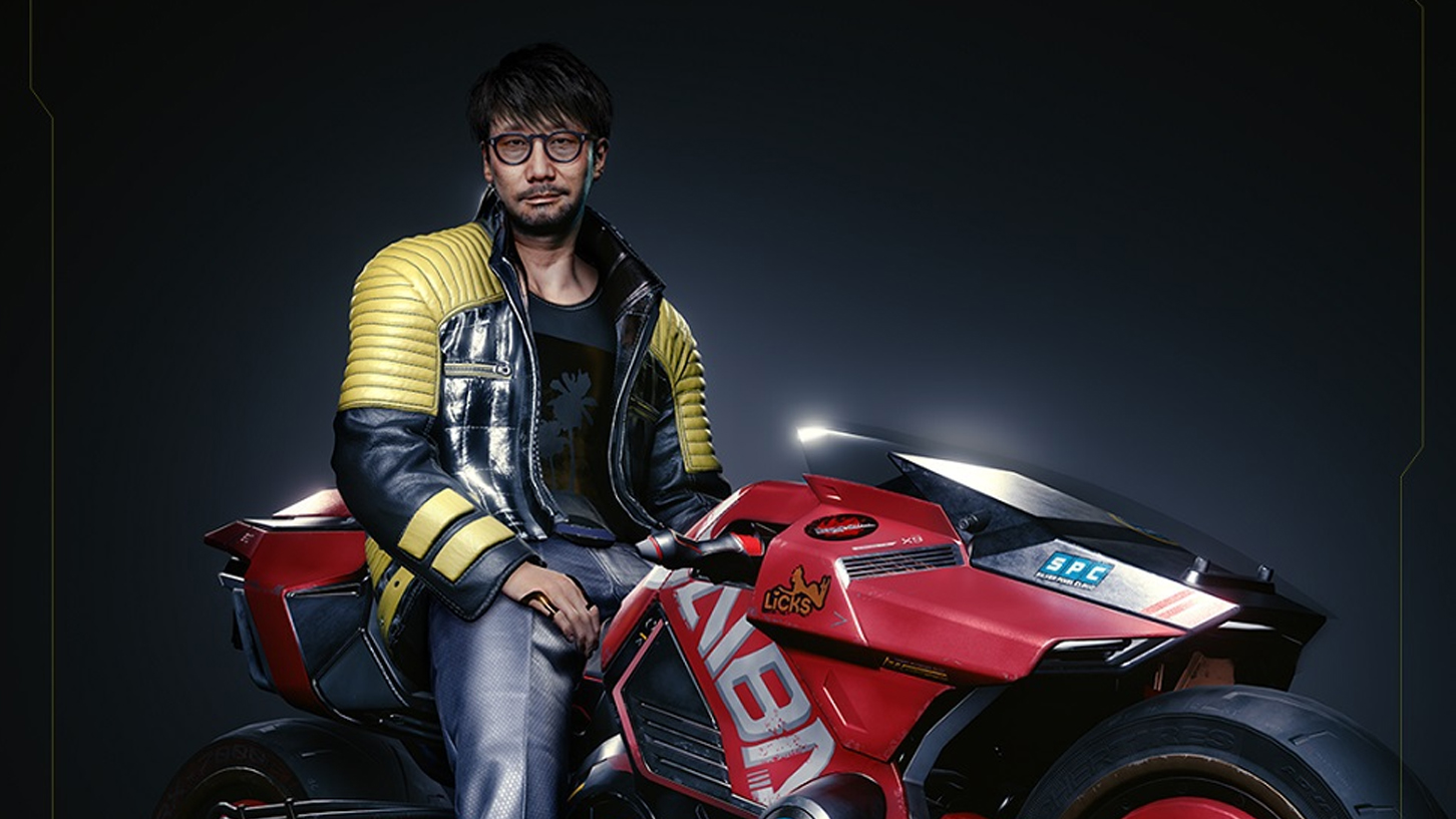 Inspiré par la visite de Kojima-san sur le stand de Cyberpunk 2077 du Tokyo Game Show 2019, le studio polonais a modélisé le célèbre réalisateur en tant qu’habitant de Night City, avec la veste qui claque et les améliorations cybernétiques qui vont avec, chevauchant la fameuse moto du jeu.