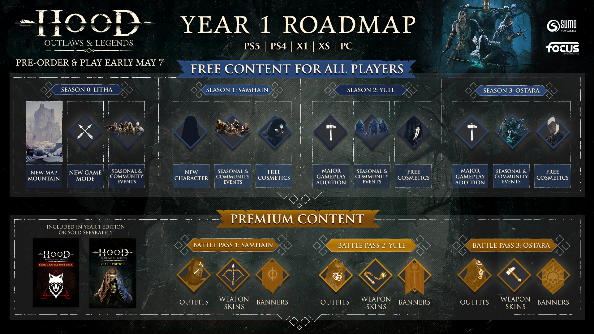 Dans un tout nouveau trailer, Hood: Outlaws & Legends révèle ses plans pour sa première année d’exploitation. Les développeurs de Sumo Digital vont continuer de plancher pour pouvoir apporter du nouveau contenu régulier entièrement gratuit. Ceux qui le souhaitent pourront acheter l’édition « Year 1 » du jeu, qui leur permettre d’accéder à tous les éléments cosmétiques exclusifs de 3 Battle Passes premiums, sur 3 saisons.