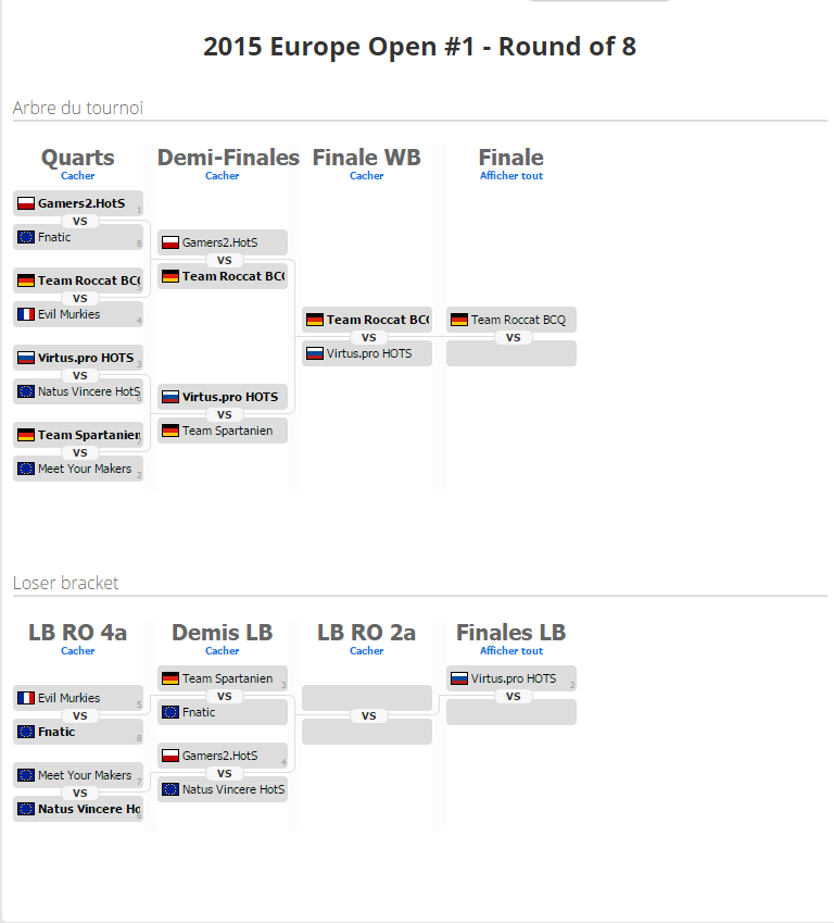 Enfin, c’est aujourd’hui, à partir de 16 heures, que se dérouleront les derniers matches de cet Europe Open. Si Team Roccat a déjà assuré sa place en finale, et à la Blizzcon en remportant le winner bracket, ils sont encore 5 à pouvoir se disputer le rôle de challenger.