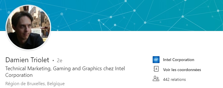Damien Triolet, l’ex-journaliste de Hardware.fr et ex-Technical Marketing d’AMD pour sa branche graphique aurait changé de bord il y a presque deux mois pour aller rejoindre Intel pour le même poste, en plus de la division Gaming and Graphics de la marque. C’est son profil LinkedIn qui le dit.