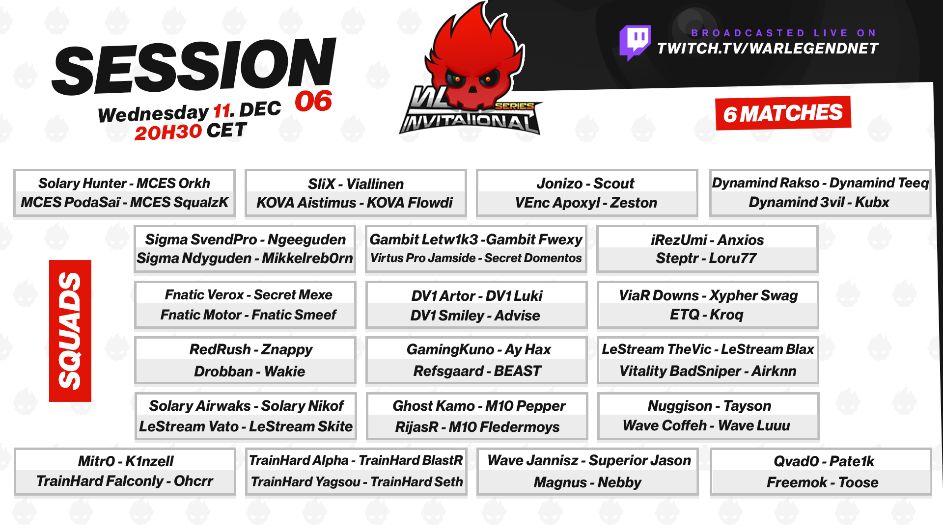Each Session will be casted live on War Legend’s WebTV by @ClayStehling and @Leven2K.