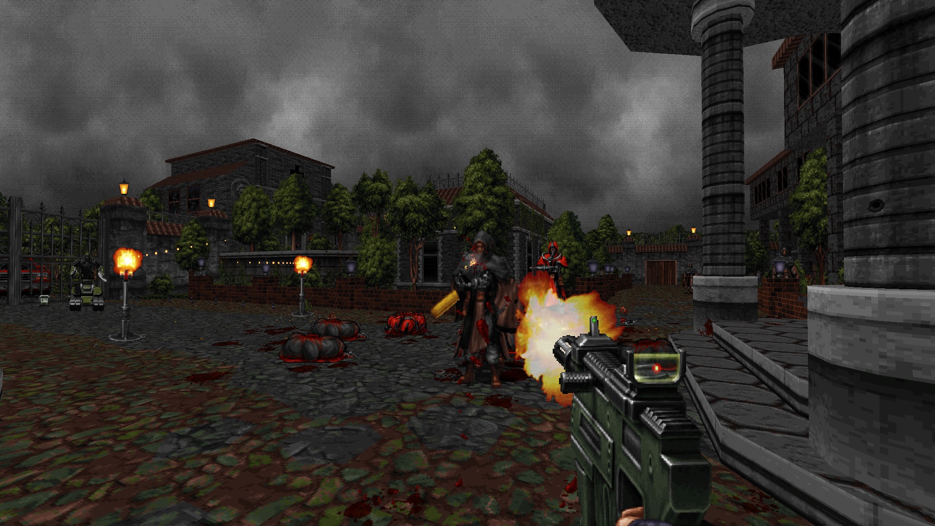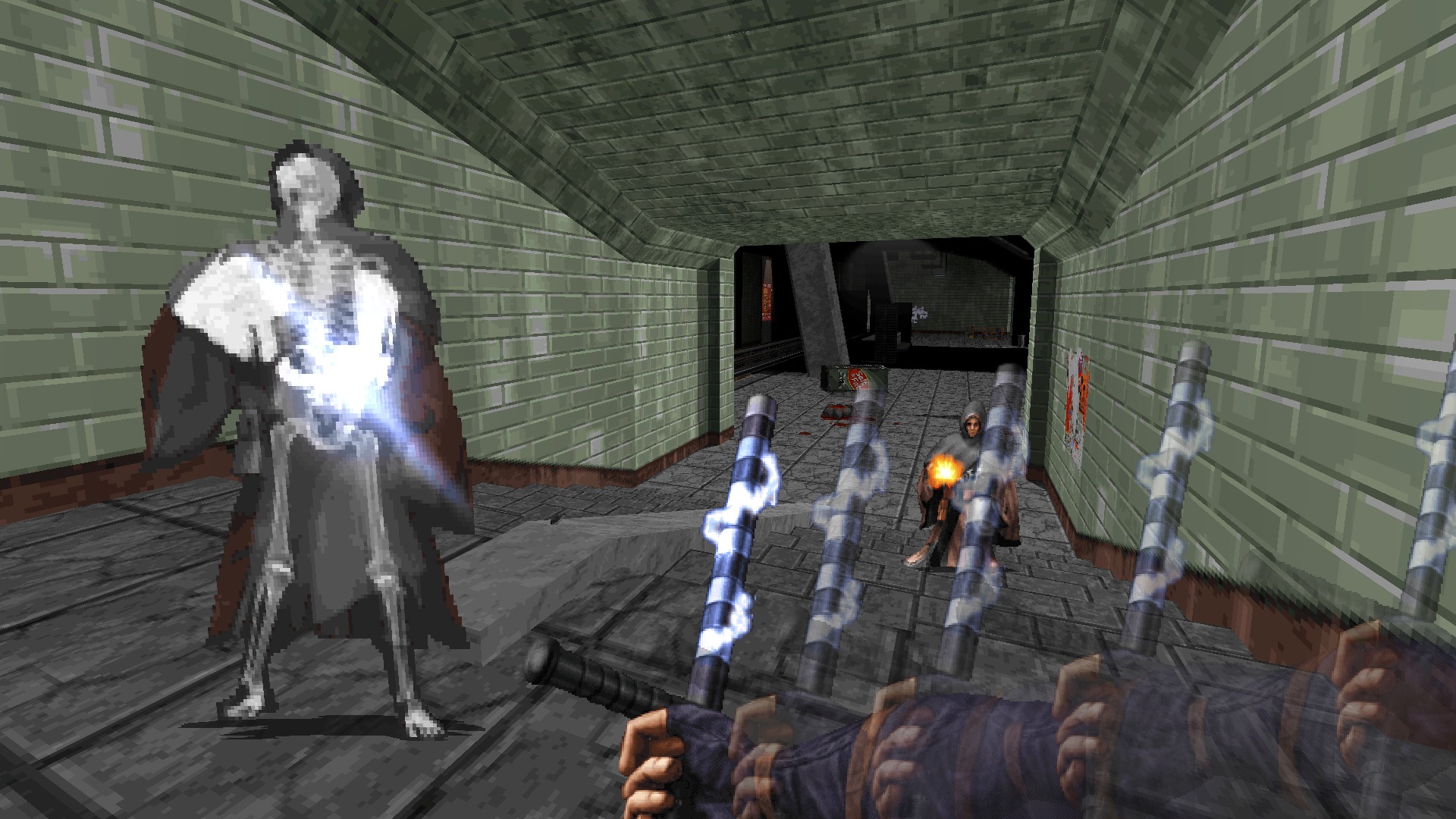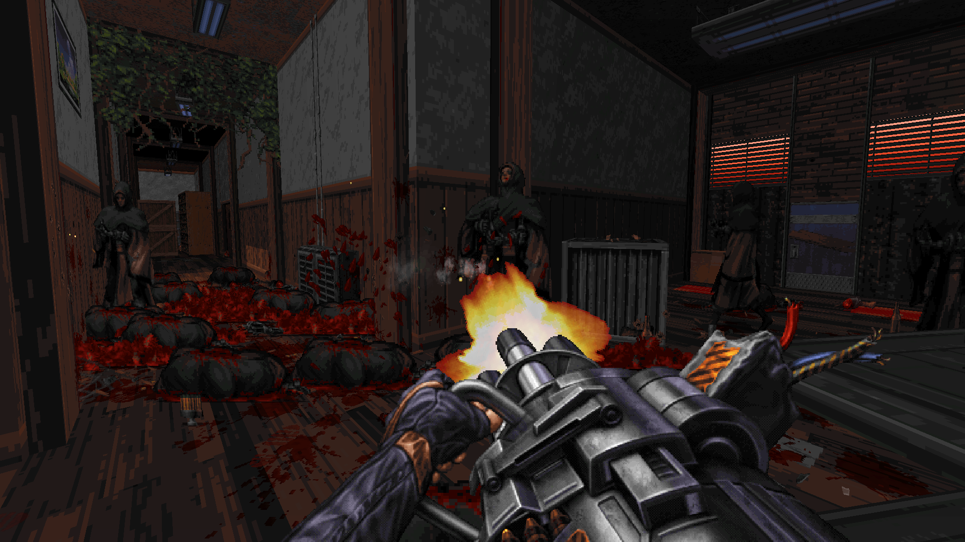 Seulement, Ion Maiden n’est pas n’importe quel autre shooter qui se revandique du terroire à l’ancienne, puisque c’est littéralement dans un vieux pot que le jeu a été développé. Fabriqué à partir du Build Engine qui a donné l’identité visuelle de Duke Nukem 3D en 1996, la version améliorée du moteur permet de gérer désormais des sprites et des textures en très haute résolution.