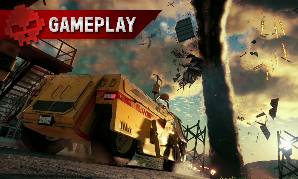 Grâce au nouveau moteur Apex, Avalanche Studio enchérie l’expérience vis-à-vis de la physique en implémentant des tornades destructrices. Ces dernières agissent en temps réel sur l’environnement et emportent tout sur leur passage. Certains équipements comme une sorte de voiture blindée peuvent y résister et permettre au héros de s’en approcher.