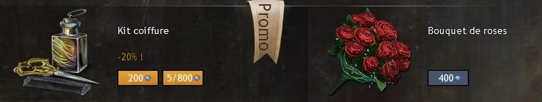 Saperlipopette c’est la Saint Valentin, donc vous pouvez acheter de nouveaux articles, en fait non, juste un beau bouquet de roses. Il y a aussi les soldes pour le Kit de coiffure, pour être beau pour madame, donc ça nous donne :