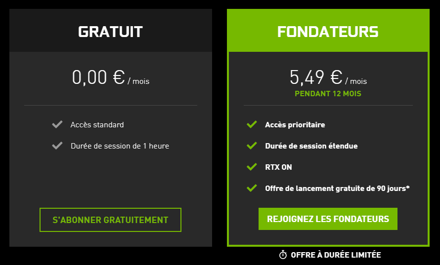 Le tarif n’est pas encore final, car il s’agit d’une offre de lancement. NVIDIA ne l’a pas encore communiqué, mais les premiers fondateurs pourront profiter de la ristourne pendant un an. De plus, les 90 premiers joueurs sont offerts avant le premier prélèvement. Ça laisse le temps de testouiller la puissance du Nuage et de se faire sa propre idée.