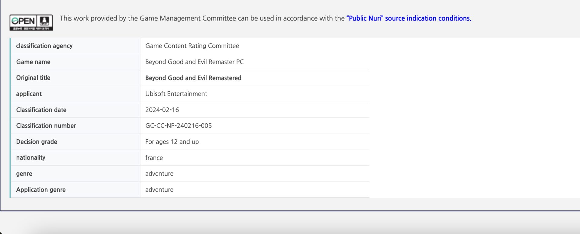 Révélé à l’origine par l’inadvertance d’Ubisoft en personne, le remaster de Beyond Good & Evil revient aujourd’hui sur le devant de la scène, courtoisie une fois encore du Game Rating and Administration Committee coréen. Décidément.