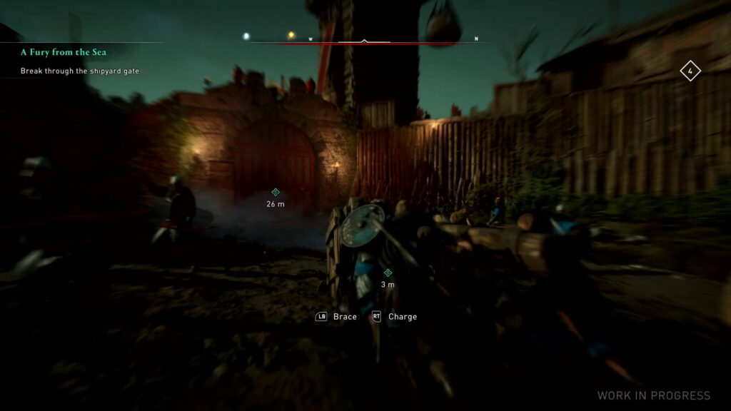 Charge en Drakkars sur la place forte, attaques de bélier sur une série de portes et décapitation de soldats saxons en série, Eivor et ses troupes foncent dans le tas. Quitte à faire le plus dramatique possible, le joueur progresse jusqu’à tomber sur le chef du clan accompagné de son Loup d’attaque. Une fois démis, l’avant-poste est désormais occupé par les vikings et géré par le joueur.