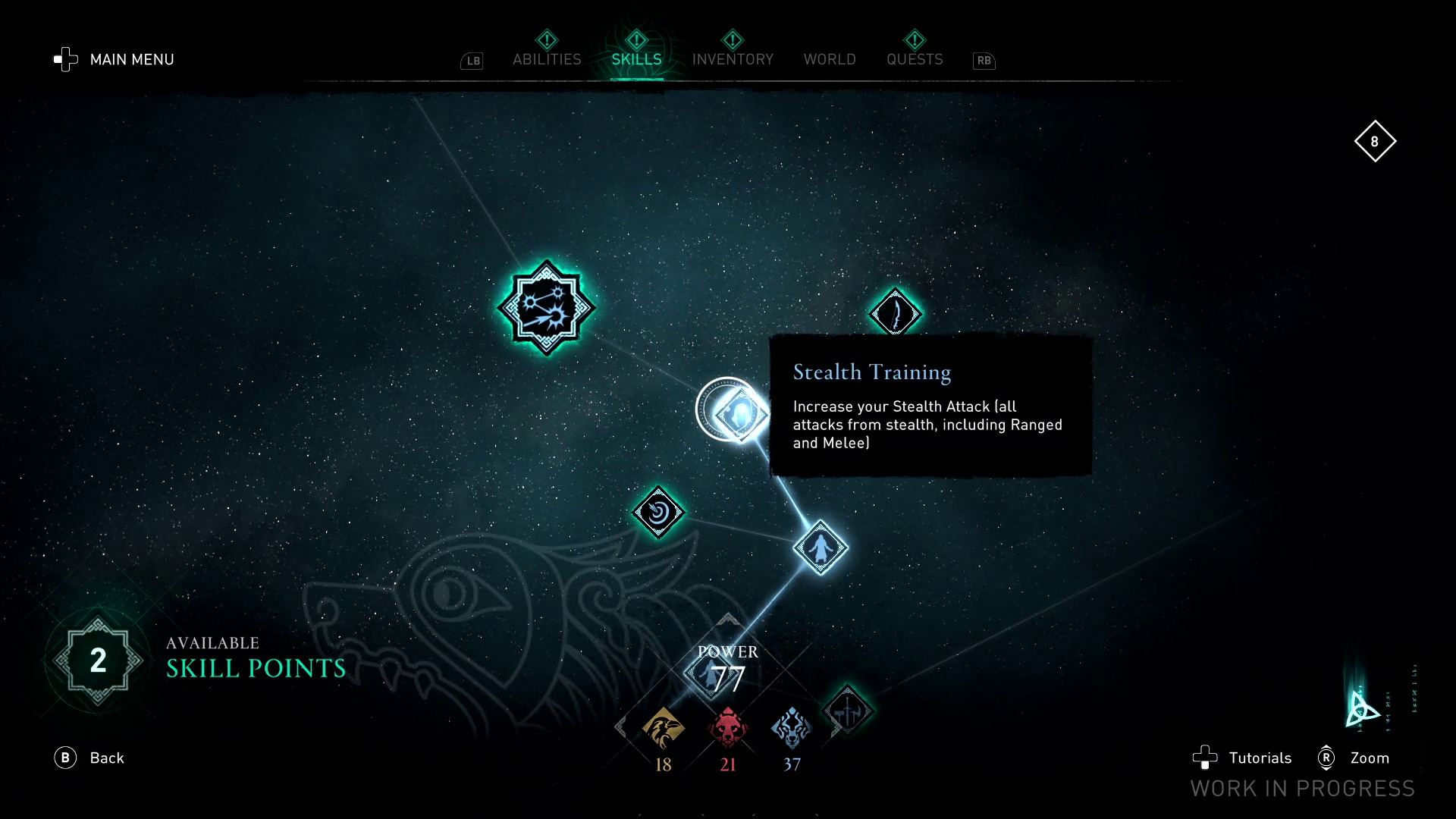 C’est l’occasion également d’avoir un aperçu de l’inventaire et de l’arbre de talents, finalement assez proches de ce qui était présent dans les deux jeux précédents. Rien de bien transcendant, bien que le skin Vikings fonctionne plutôt bien par moment. Toutefois, on évitera de donner un premier avis sur le jeu en question, car la mention Work In Progress n’est pas là pour rien : effets spéciaux, animations, I.A, combats… beaucoup d’éléments nécessitent encore pas mal de polish. Il ne serait pas étonnant que la build utilisée soit vieille de nombreux mois.