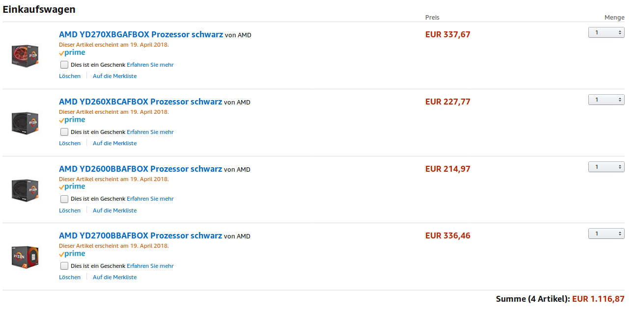 Les processeurs Ryzen 2000 ont été brièvement listés sur Amazon.com et .de avec leur prix