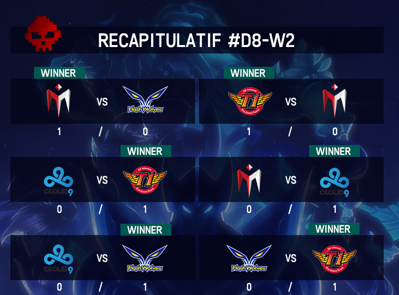 C’est donc SKTT1 et Cloud9 qui passent en quart de finale pour le groupe B. Élimination des Flash Wolves ainsi que IMay qui auront montré un bon niveau de jeu.