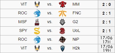 Les Fnatic continuent sur une victoire et battent les G2, leurs rivaux principaux avec les H2k. Les Splyce restent également imbattus. À côté, Vitality continue à perdre, tout comme les les Mysterious Monkeys (équipe Misfits rachetée pour le Summer Split).