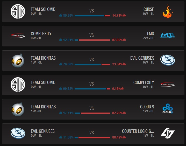 | 2 | Team SoloMid | 3 | 1 | |