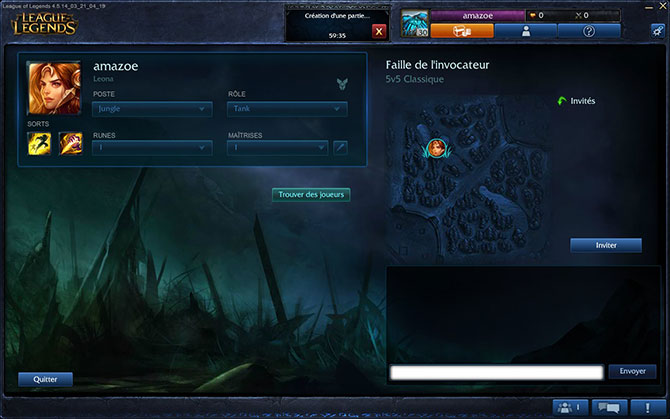 Vous êtes le capitaine de votre équipe, après avoir sélectionné un champion et un rôle, vous avez la possibilité d’inviter vos amis. Ensuite le créateur d’équipe se charge de vous trouver les joueurs qui correspondent le mieux à votre besoin.
