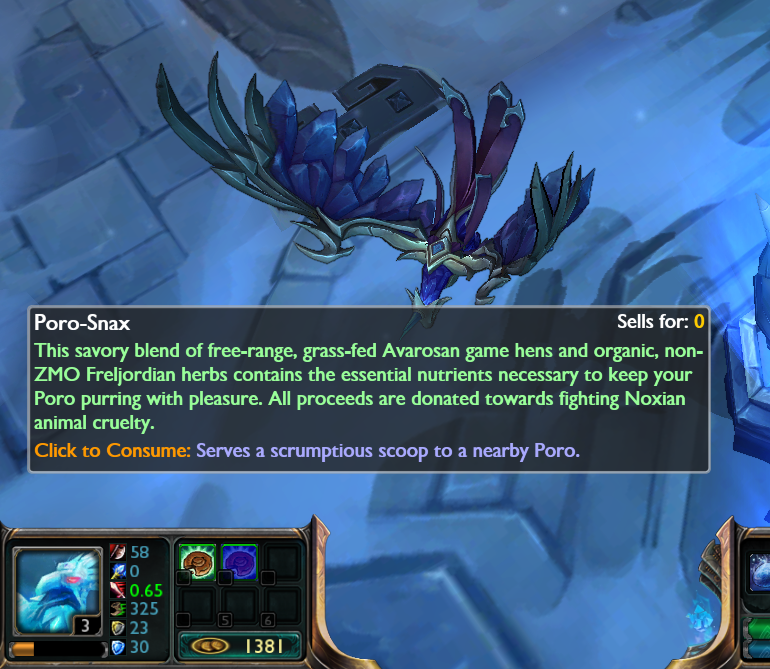 Quand vous utilisez le biscuit sur le Poro, il tournera autour de vous en cercles avec des petits coeur autour de sa tête. So cute.
