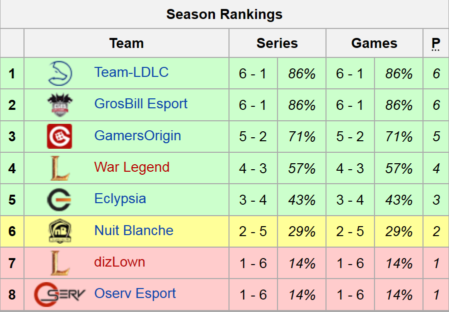 - Eclypsia, Nuit Blanche, GamersOrigin, War Legend, GrosBill Esport, Oserv Esport, Team LDLC, DizLown