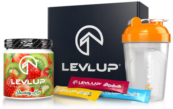 Vous avez envie d’essayer LevlUp, mais vous ne savez pas quel goût choisir ? N’hésitez pas à jeter un œil au Gaming Booster Starter Box. Ce pack de démarrage contient un shaker, un pot au choix et des échantillons de 3 goûts différents, choisis parmi les best-sellers !