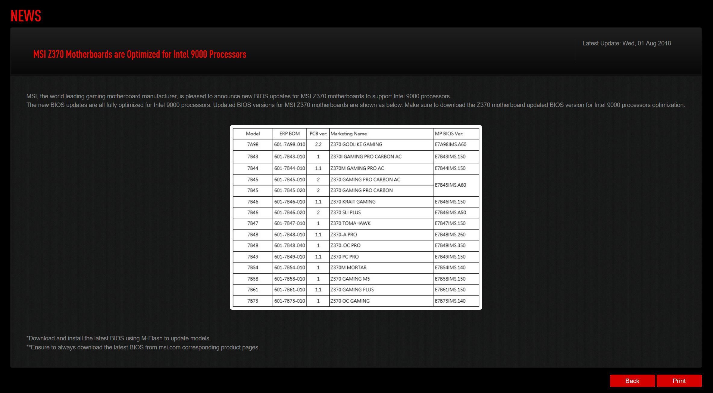 C’est un peu la misère chez MSI ces deux derniers jours. Le constructeur taïwanais est en train de déployer des mises à jour de BIOS pour ses cartes mères afin qu’elles supportent pleinement les processeurs de 9e génération d’Intel. Les processeurs en question ne sont pas encore dans le commerce, pour la simple raison qu’ils n’ont pas encore été annoncés officiellement.