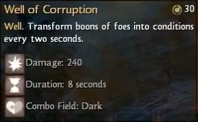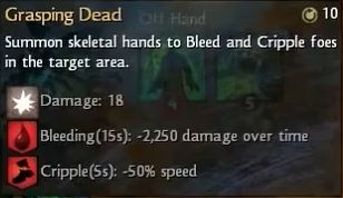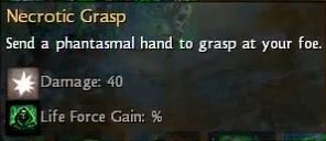 Le nécromancien a la faculté de se transformer en linceul de mort. Lors de la transformation en linceul de mort, le nécromancien dispose de 4 sorts puissants, plus de points de vie et il est impossible de le déplacer via des sorts. Ses armes sont: hache, dague, sceptre, corne de guerre, focus et bâton. Les domaines de compétences du nécromancien sont: serviteur, signet, corruption, puits, forme et spectral.